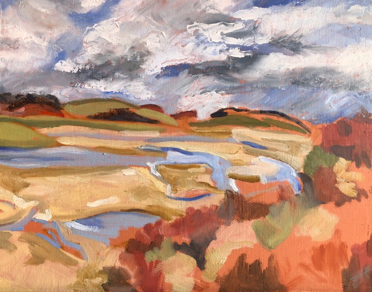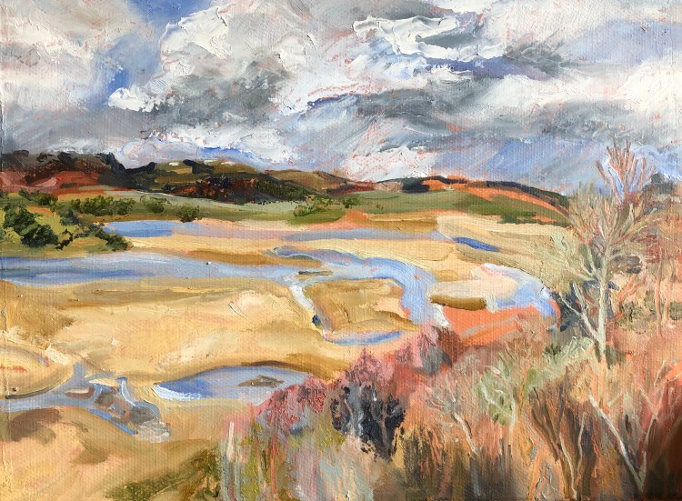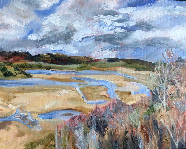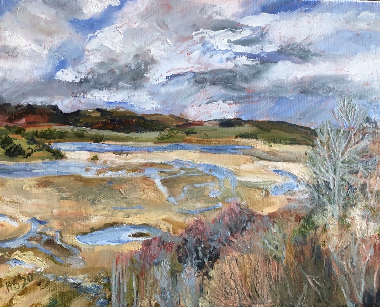 Another painting inspired by my travels in the highlands of Scotland. Insh Marshes are part of an RSPB wetlands nature reserve, covering just over 6 square miles of the River Spey floodplain. It is an easy hike from Kingussie on the way to Kincraig, along the Badenoch Way.