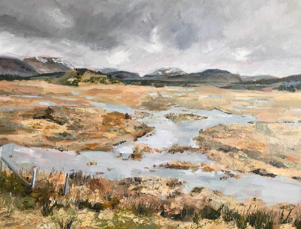 This magnificent limited edition Giclee print has just been added to the prints page. Insh Marshes are seen here on a March day with a light dusting of snow to be seen on the hills in the distance. There is little sign of spring yet in this landscape: the reed beds retain their winter colour and there is a threat of snow in the sky. Visit purchase to see the full range of prints cards and original paintings available from this site.