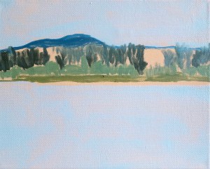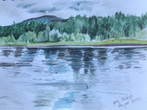 Back to the Cairngorms for my next few paintings. My inspiration for this piece lies in the way the land forms a narrow strip between the loch and the sky, and the contrasting patterns created by the forrest. This sketch was created on a trip to Newtonmore earlier this year and shows Loch Morlich on an overcast day.