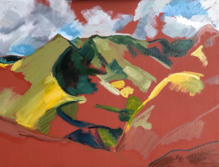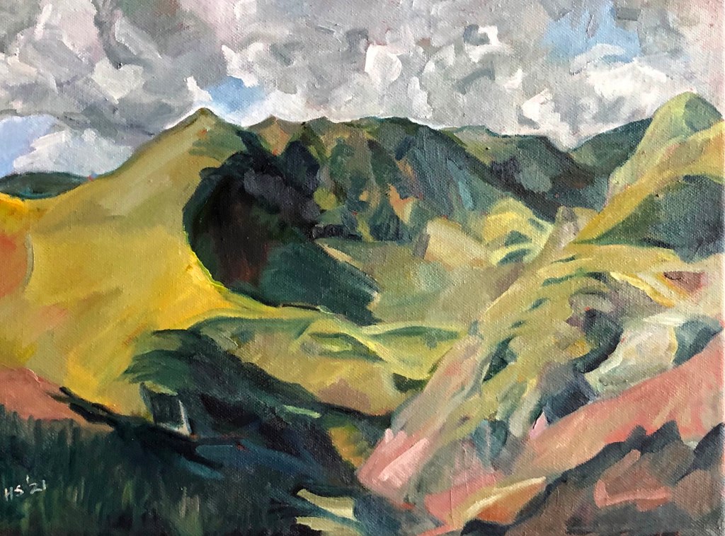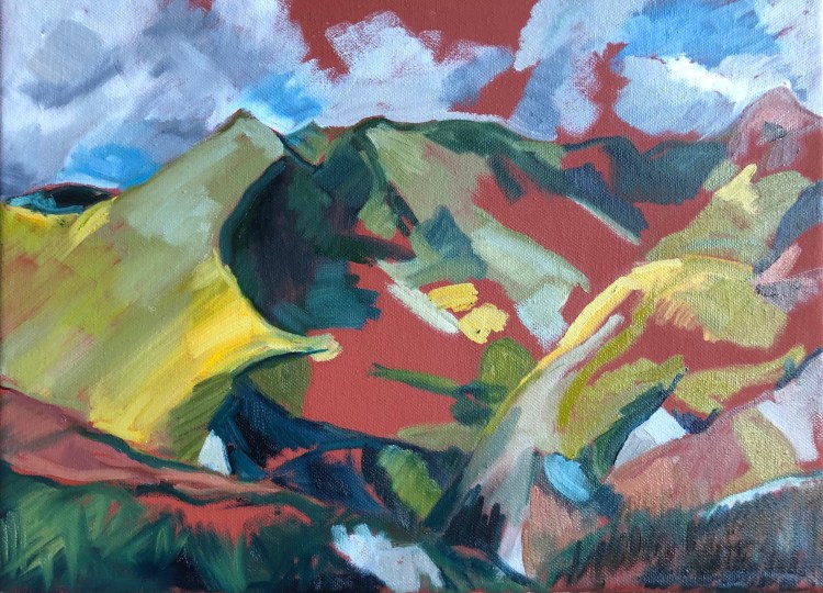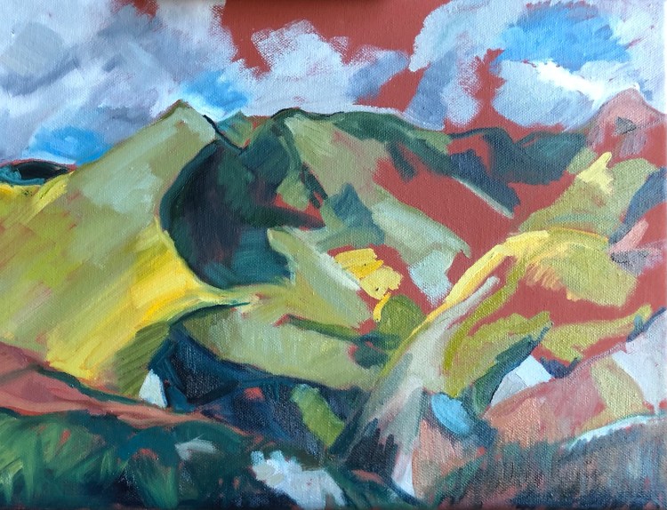 The first completed work of 2021 which takes me back to last summer, and a taste of freedom in the Lake District. This image captures the view from Loughrigg Fell, looking toward Langdale. For once the weather was kind which allowed me to complete a preliminary sketch. I was hoping to capture a dramatic vista, made more so by the shade cast by the summer sun in the valley.