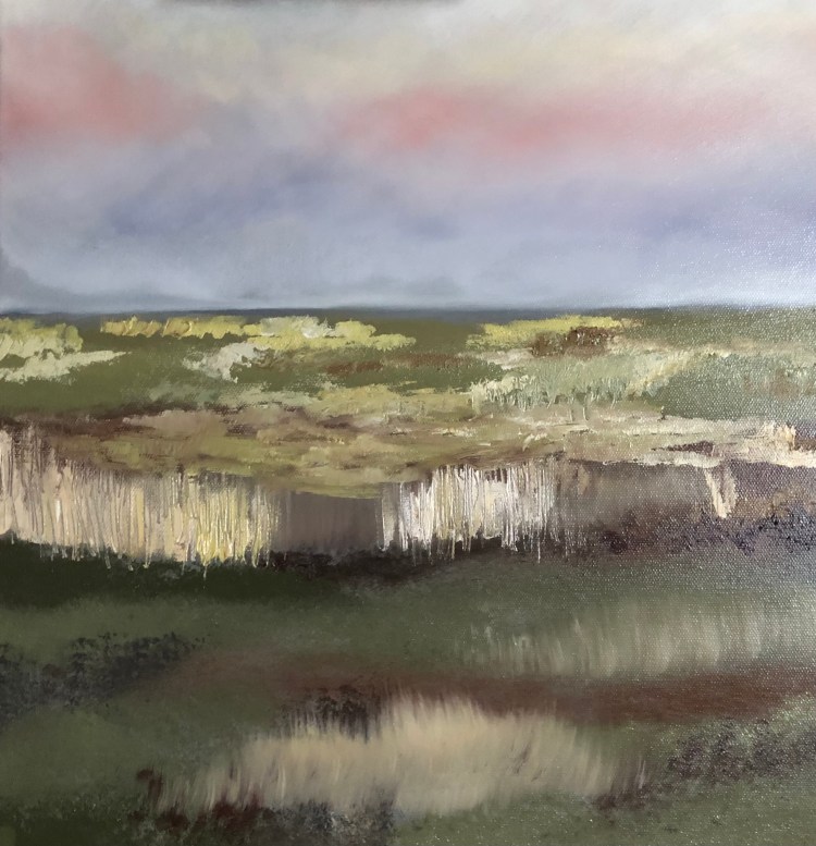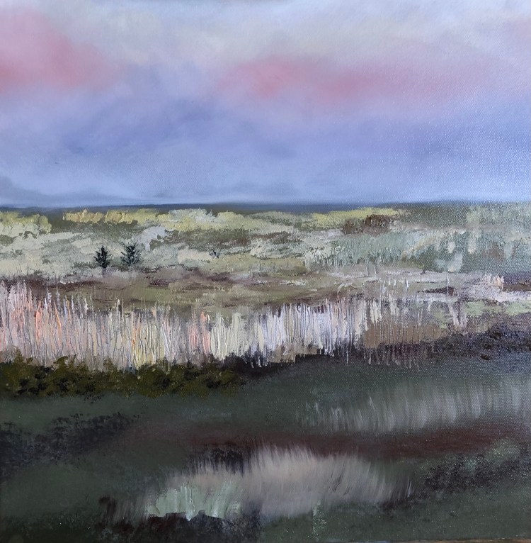 The subject of my next painting is the shoreline at Tentsmuir National Nature Reserve in Fife. I visited on a late autumn afternoon just as the sun was beginning to set creating a subdued colour palette dominated by soft greys, greens and pinks. The sea is barely discernible: just a distant line on the horizon, the grass covered dunes stretching to the shoreline. Fans of Autumnwatch may remember that Tentsmuir was one of the sites featured in the October 2020 series.