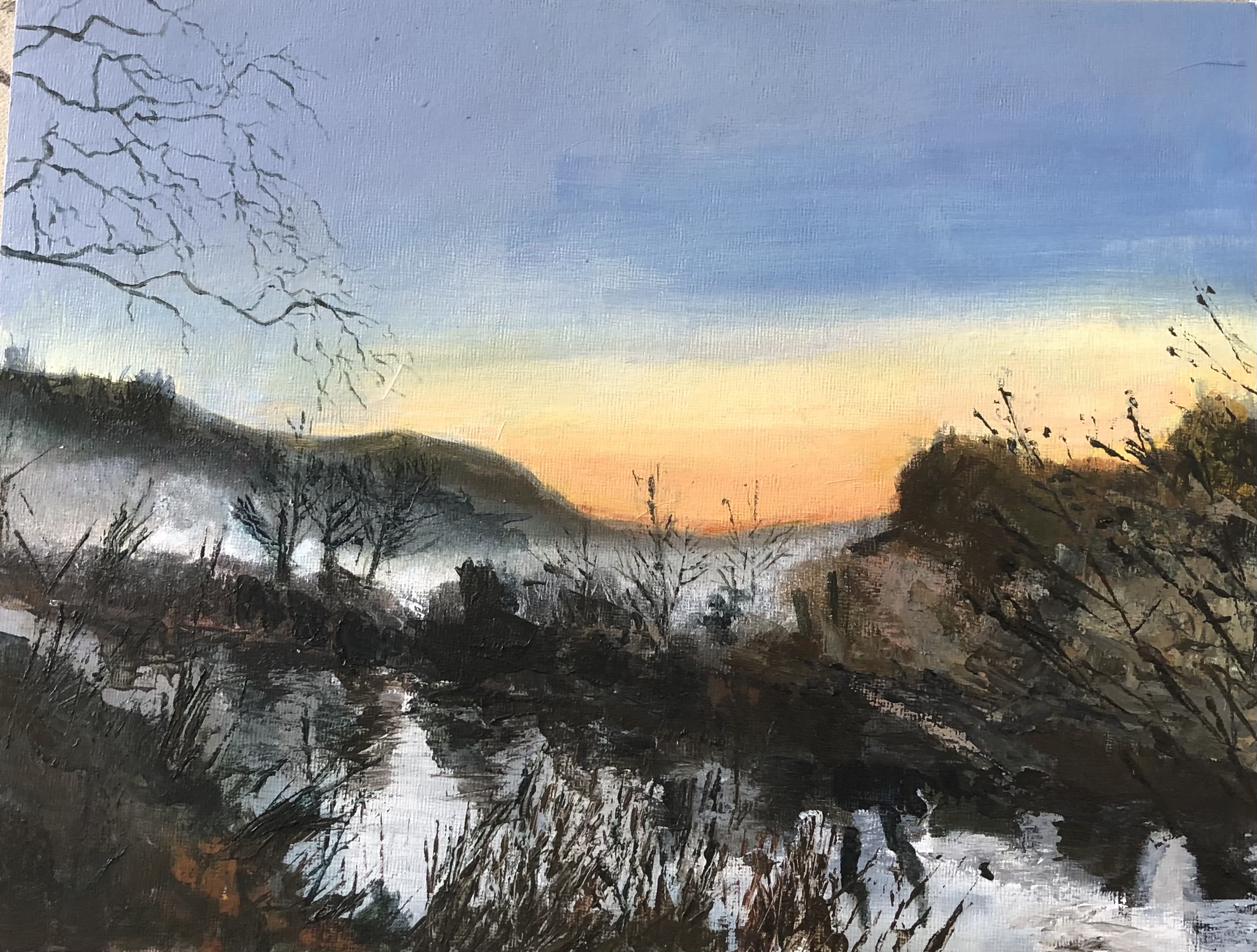 A winter and a spring scene in this collection of two paintings, both of which feature water in some form. The two paintings are distinctly different in terms of mood; Gadden Loch being light and airy in direct contrast to Evening Mist which is dark and brooding. Both paintings will be available to buy from the Marchmont Gallery Warrender Park Road, Edinburgh from 25th May.