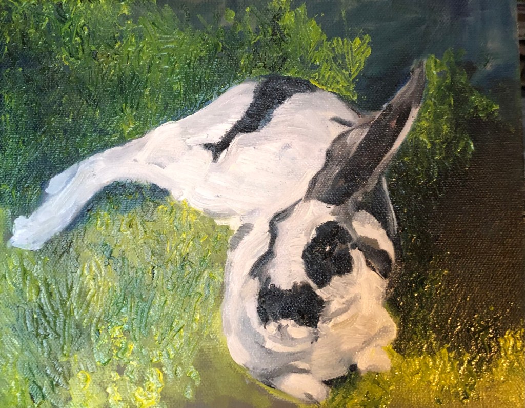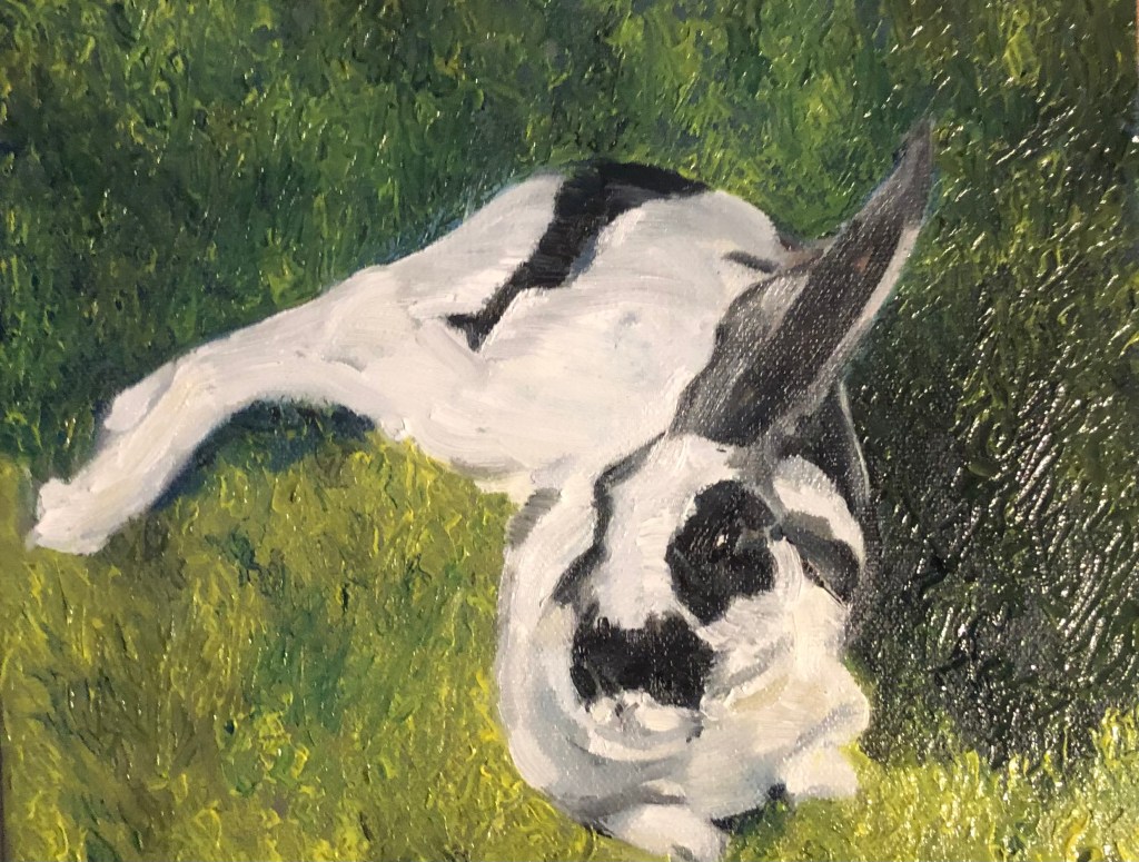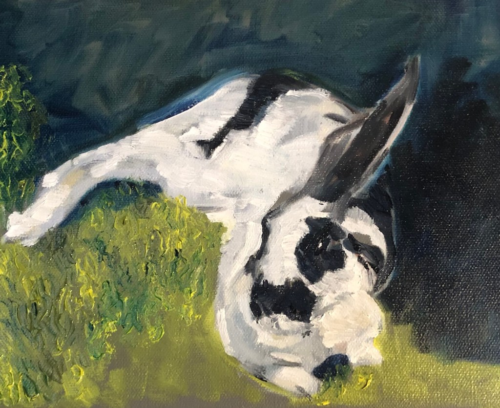I like painting animals but don’t get asked very often, so I was very happy to attempt to immortalise Speedy the rabbit for my granddaughter.