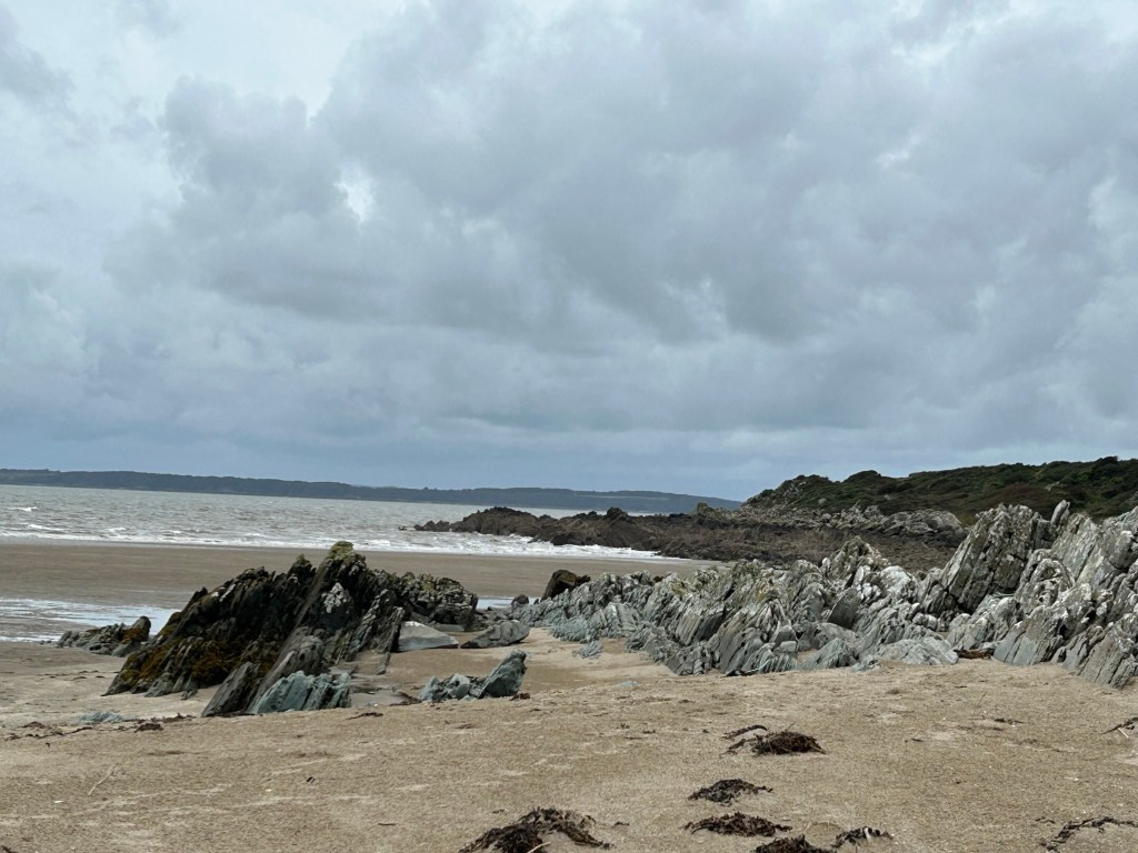 Access to the coast was either by a short walk or drive from the cottage. In contrast to the rural landscape, the coastline features wide, sandy bays punctuated by clusters of rock, some jagged and others smooth and worn.