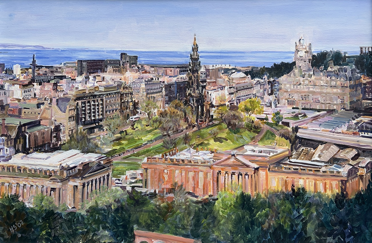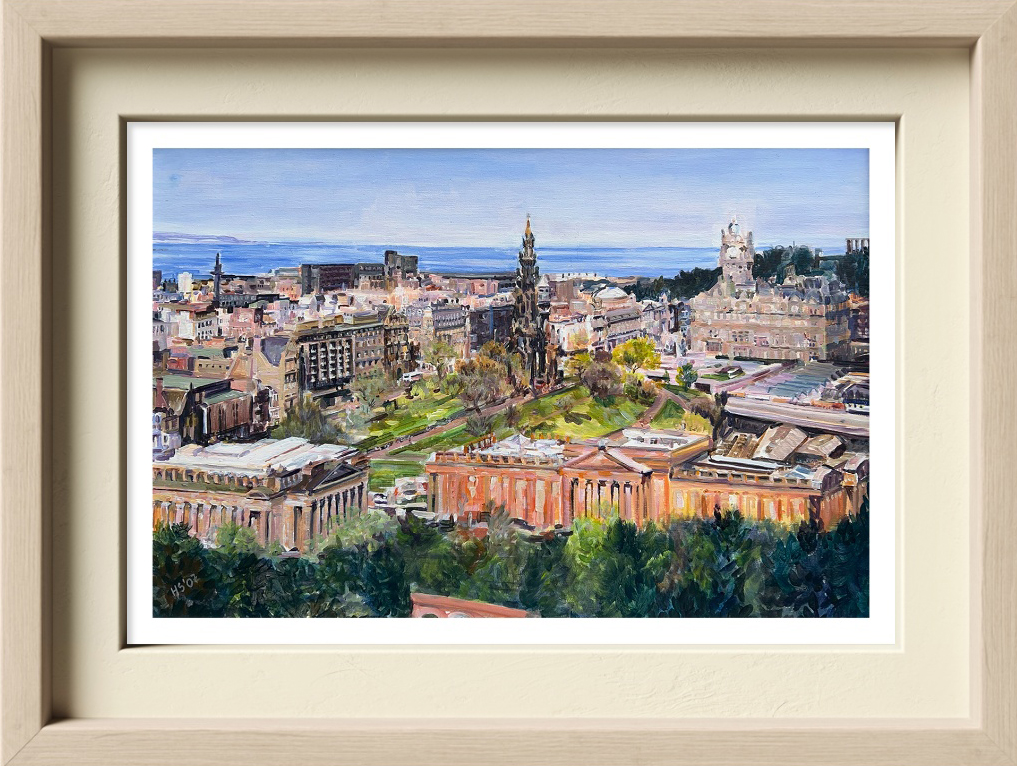 A view across Edinburgh City Centre, seen from the ramparts of Edinburgh Castle. 56cm x 35cm limited edition print on high quality paper. Supplied unframed and unmounted. Free postage and packing for orders within the UK. For prices to ship overseas, please contact me at artbysmart4@gmail.com