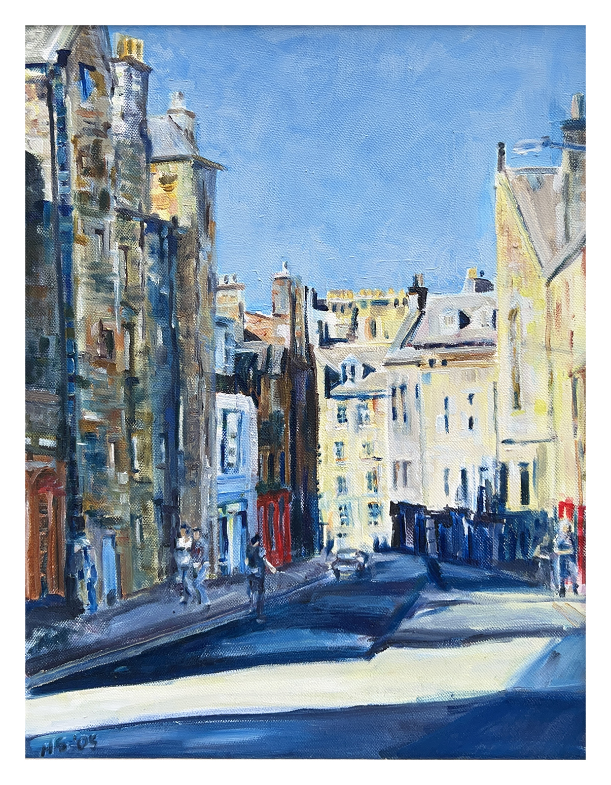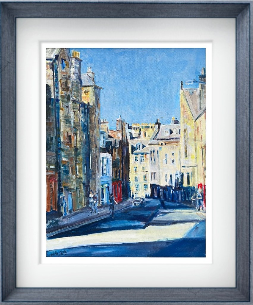 Looking toward the Grassmarket in the Old Town of Edinburgh. 30cm x 38cm limited edition print on high quality paper. Supplied unframed and unmounted. Free postage and packing for orders within the UK. For prices to ship overseas, please contact me at artbysmart4@gmail.com