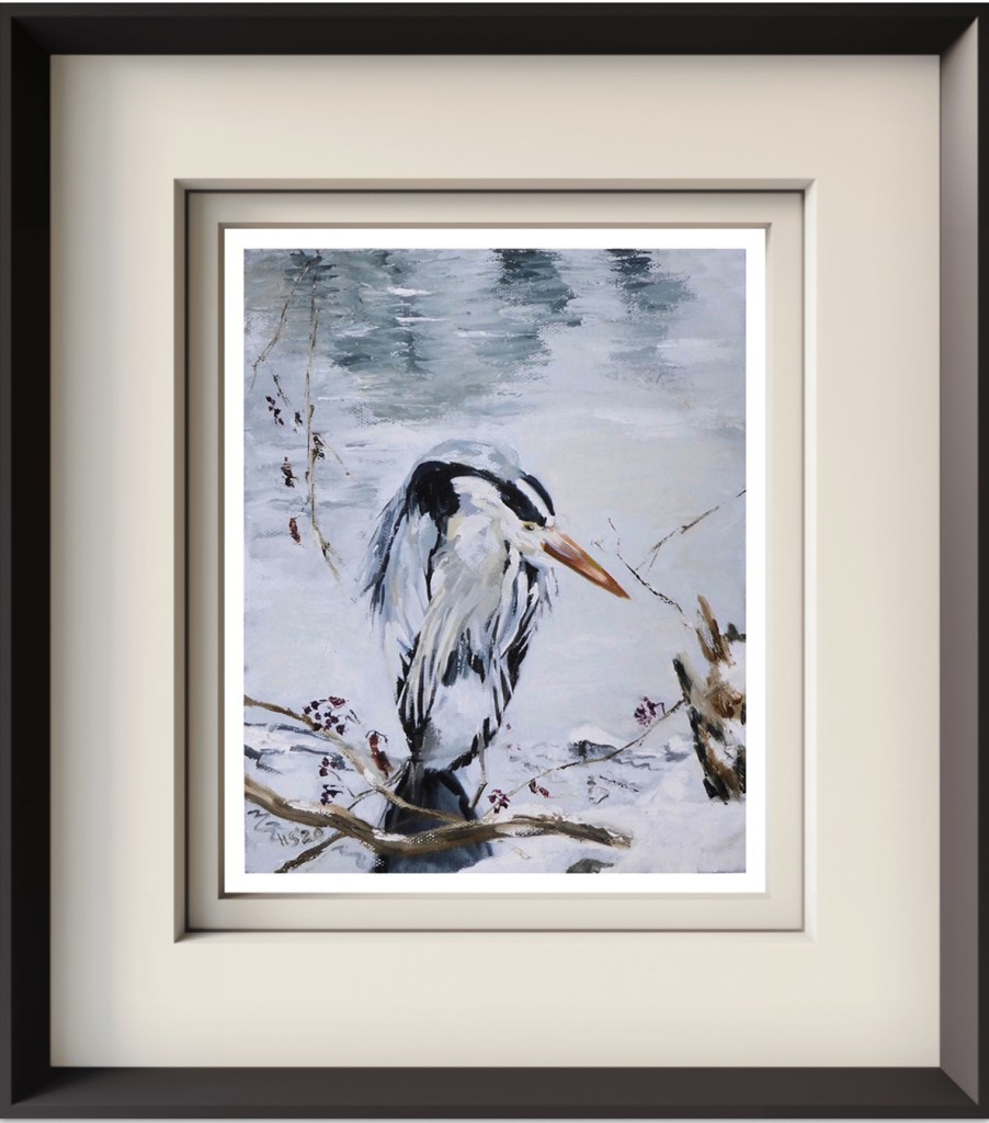 A patient heron waits at the edge of Blackford Pond, Edinburgh. 20 cm x 25cm limited edition print on high quality paper. Supplied unframed and unmounted. Free postage and packing for orders within the UK.. For prices to ship overseas, please contact me at artbysmart4@gmail.com