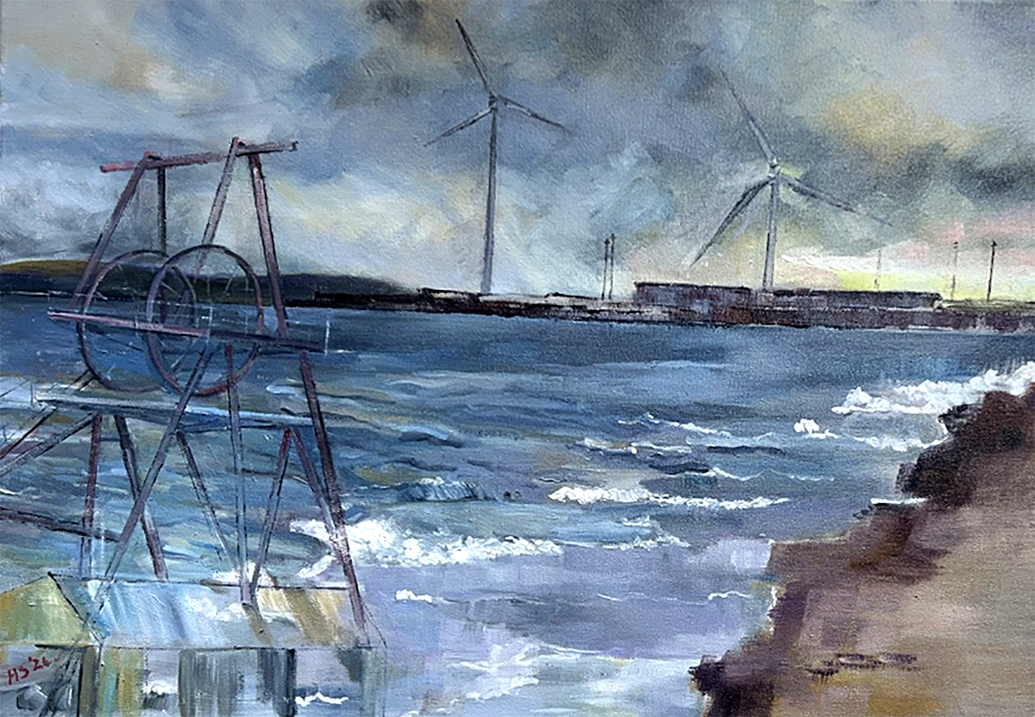 The first of two on the theme of ‘bridging gaps’. Measuring 25” x 18”, this oil on canvas is supplied framed and is signed on the front and back. Postage to destinations within the UK is free. For shipping prices to other destinations please contact me at artbysmart4@gmail.com