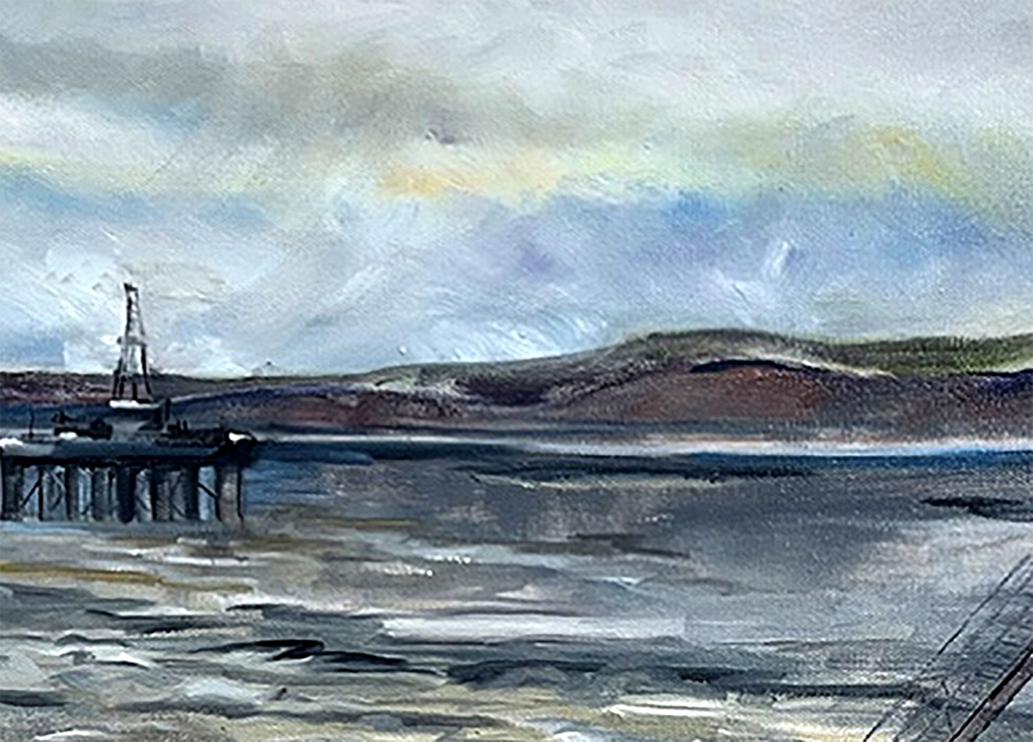 The sun reflects on the waters of the Firth of Forth. This oil on canvas measures 17”x 16”. It is supplied framed and ready to hang and is signed on the front and back. Postage to destinations within the UK is free. For shipping prices to other destinations please contact me at artbysmart4@gmail.com.