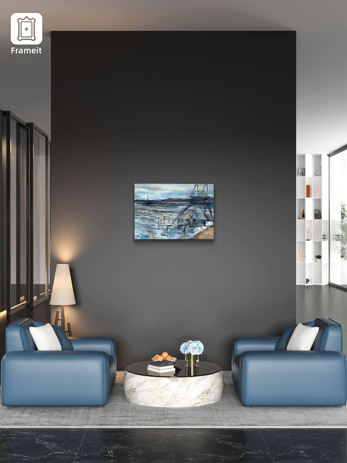 The second of two on the theme of ‘bridging gaps’. Measuring 25” x 18”, this painting is supplied framed and ready to hang and is signed on the front and back. Postage to destinations within the UK is free. For shipping prices to other destinations please contact me at artbysmart4@gmail.com