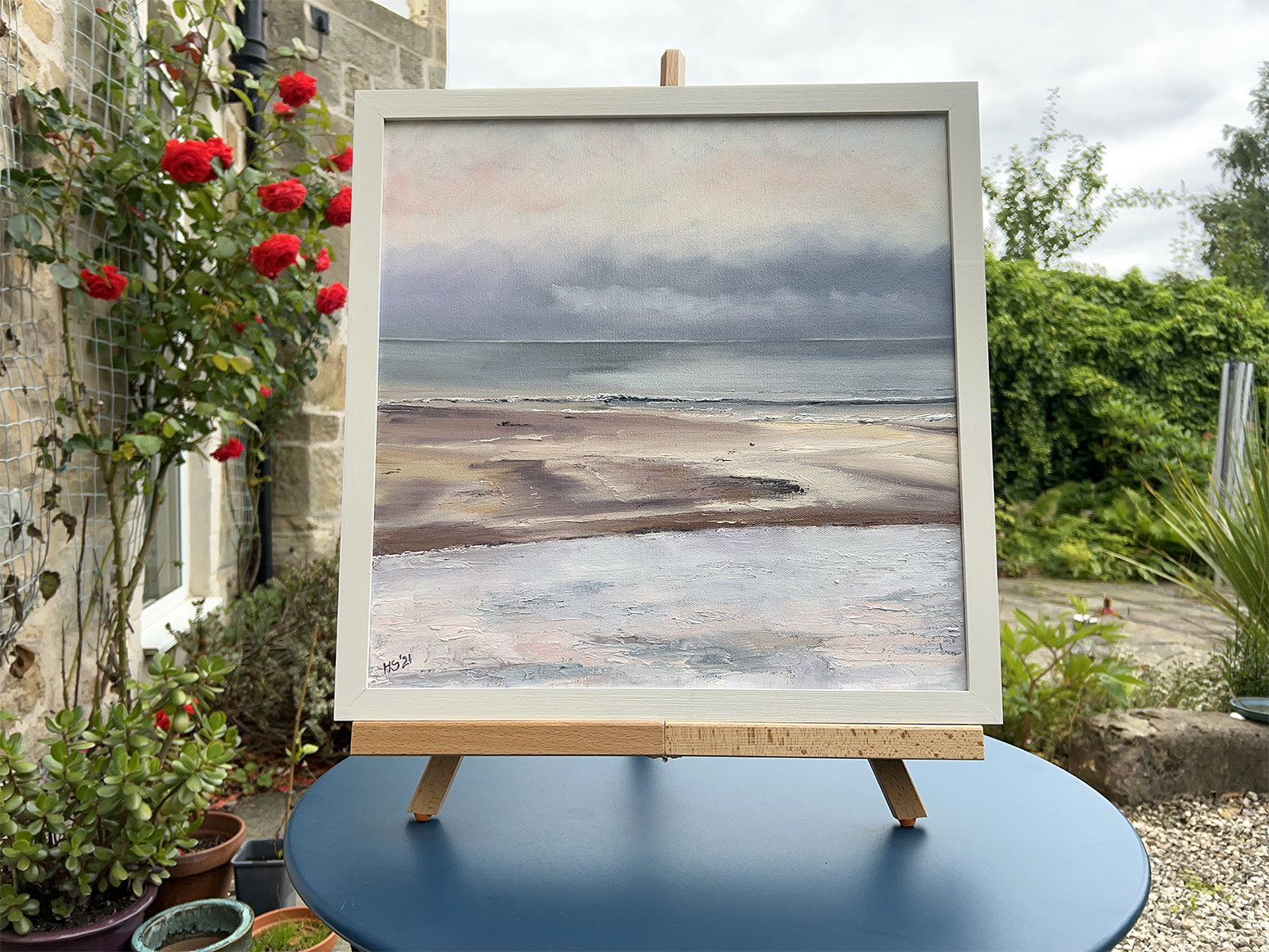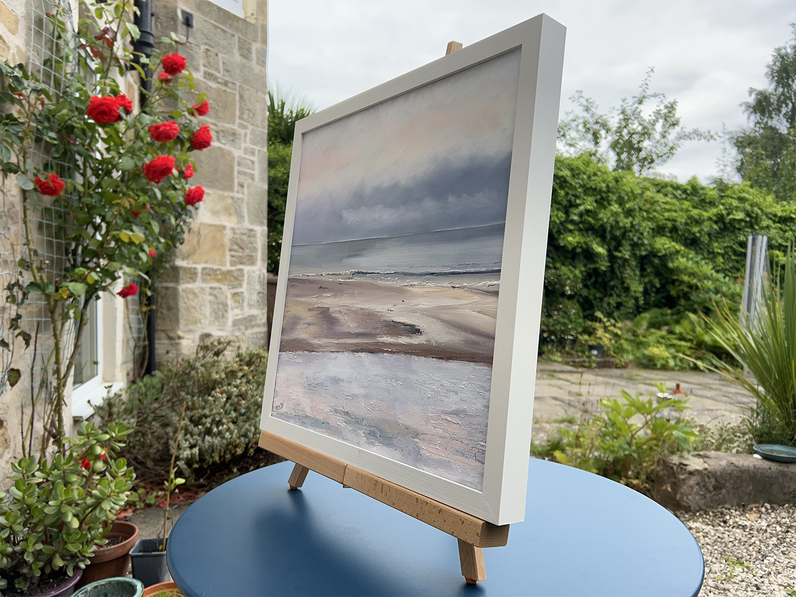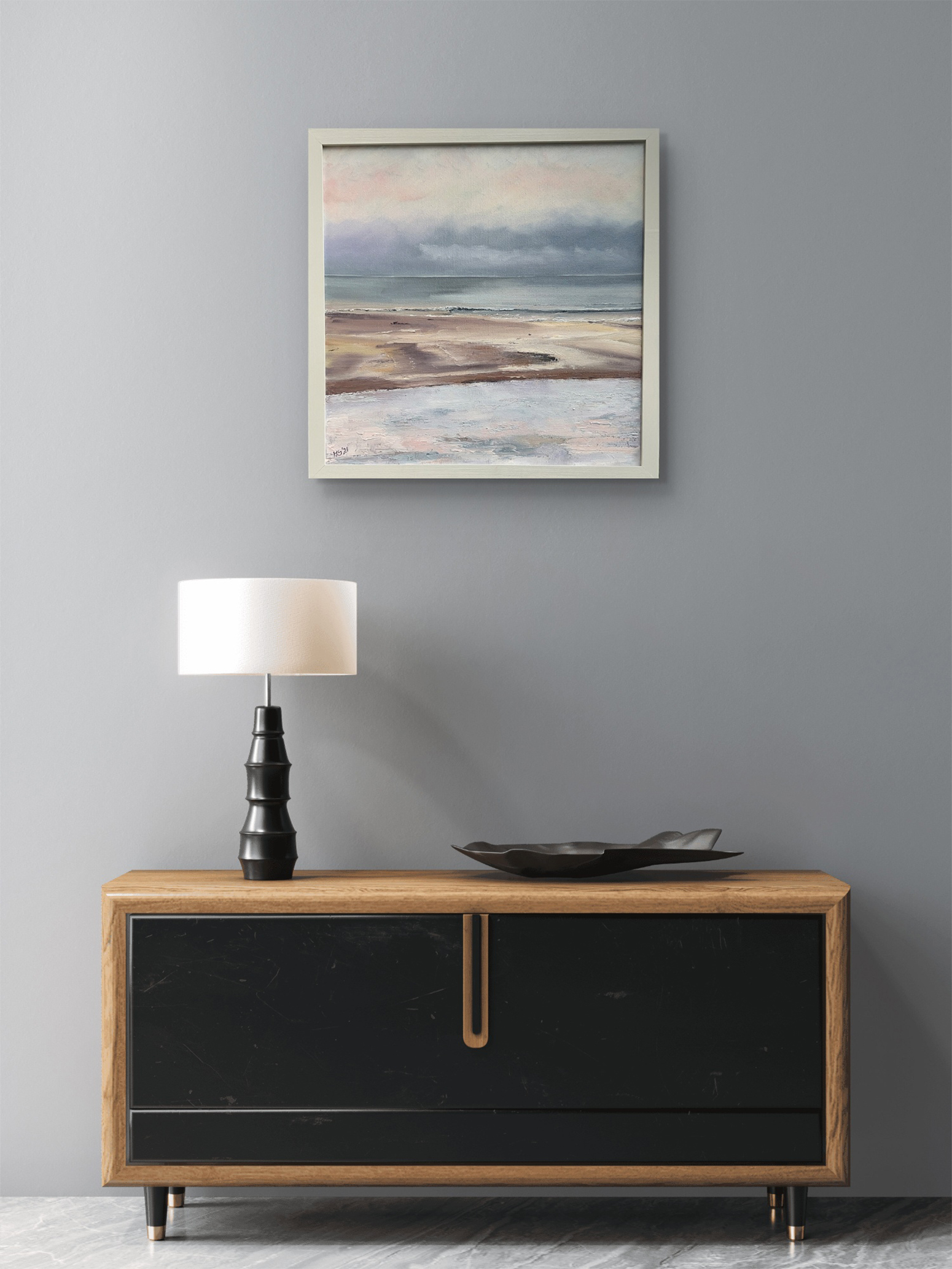 Tentsmuir beach at dusk. This oil on canvas measures 17” x 17”. It is supplied framed and ready to hang and is signed on the front and back. Postage to destinations within the UK is free. For shipping prices to other destinations please contact me at artbysmart4@gmail.com.