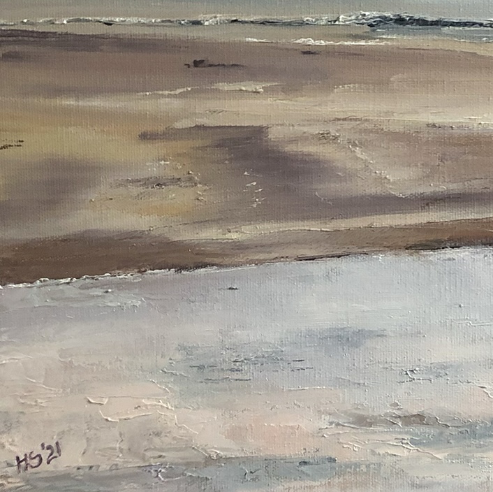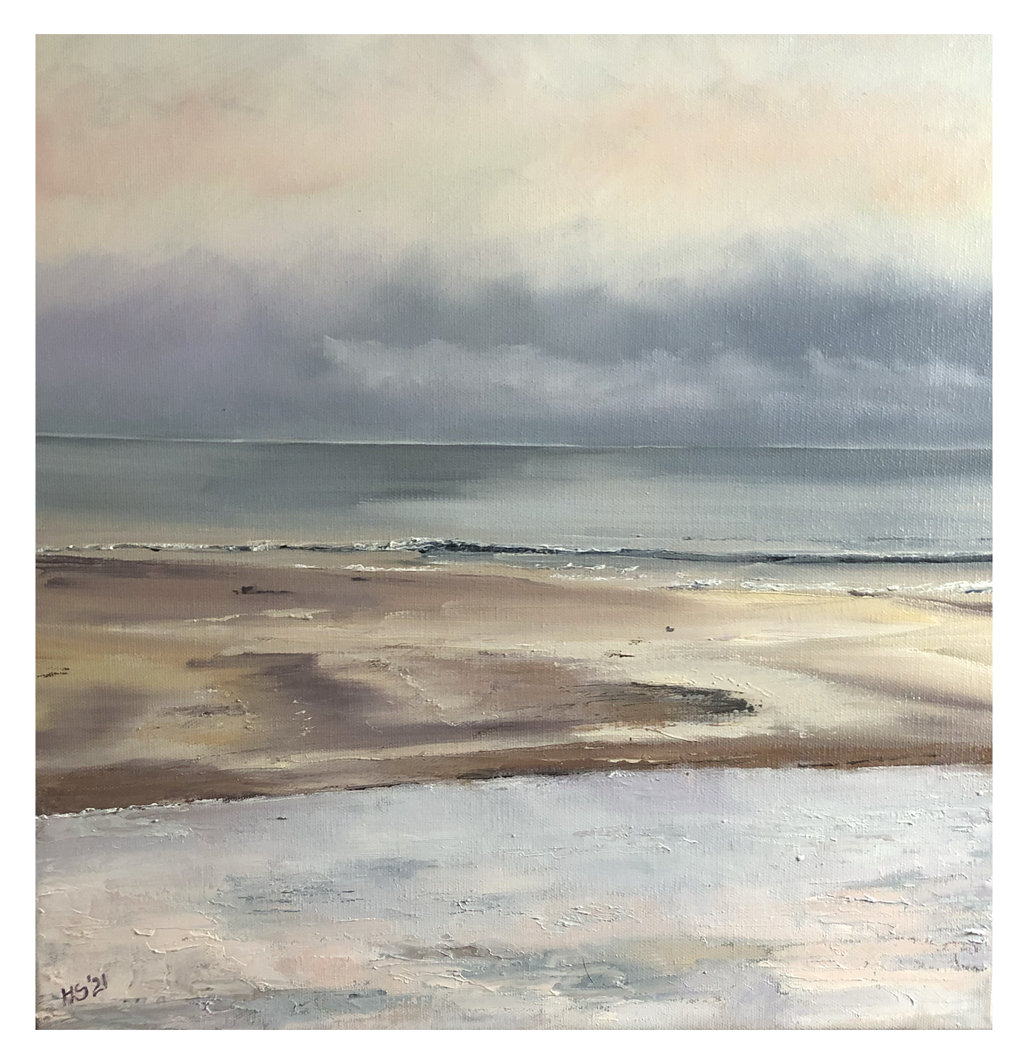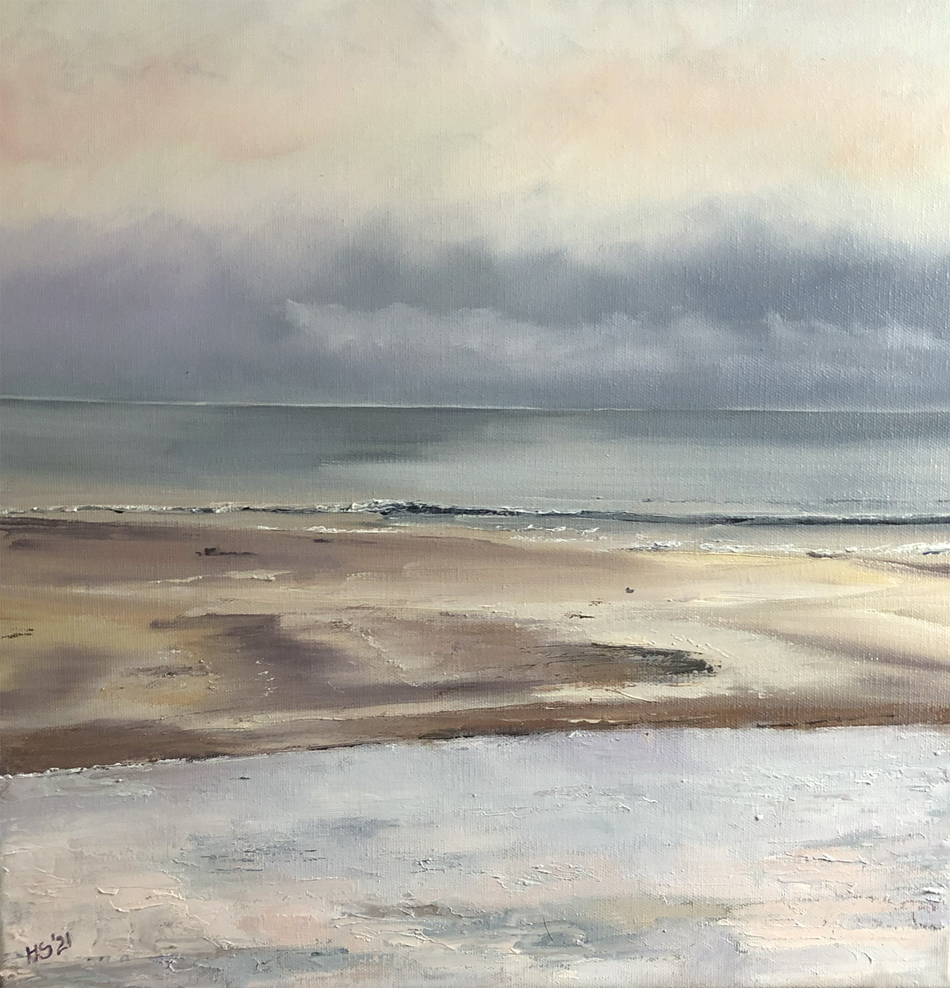 Tentsmuir beach at dusk. This oil on canvas measures 17” x 17”. It is supplied framed and ready to hang and is signed on the front and back. Postage to destinations within the UK is free. For shipping prices to other destinations please contact me at artbysmart4@gmail.com.