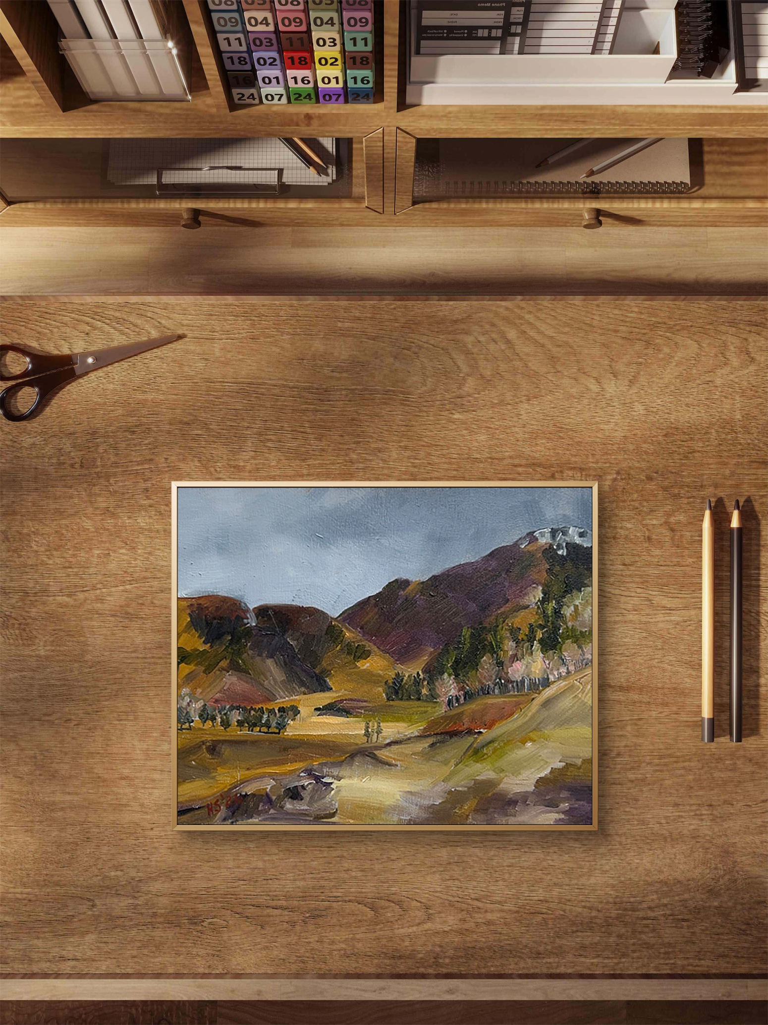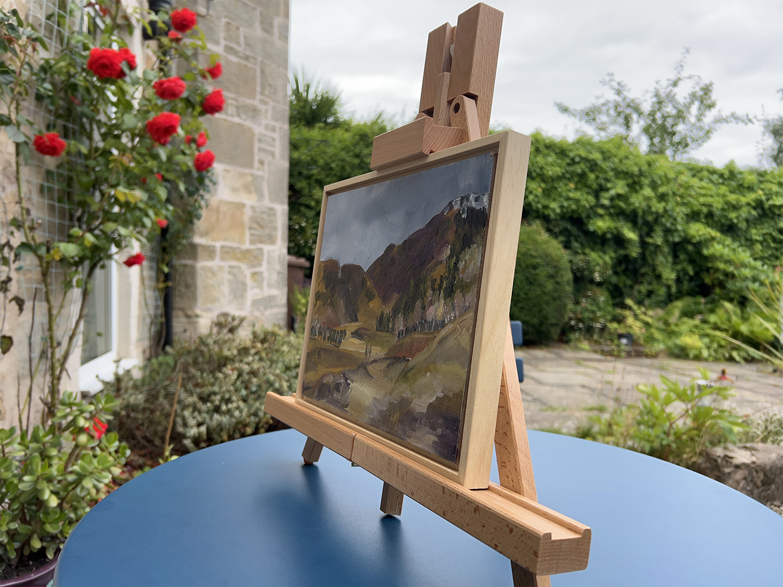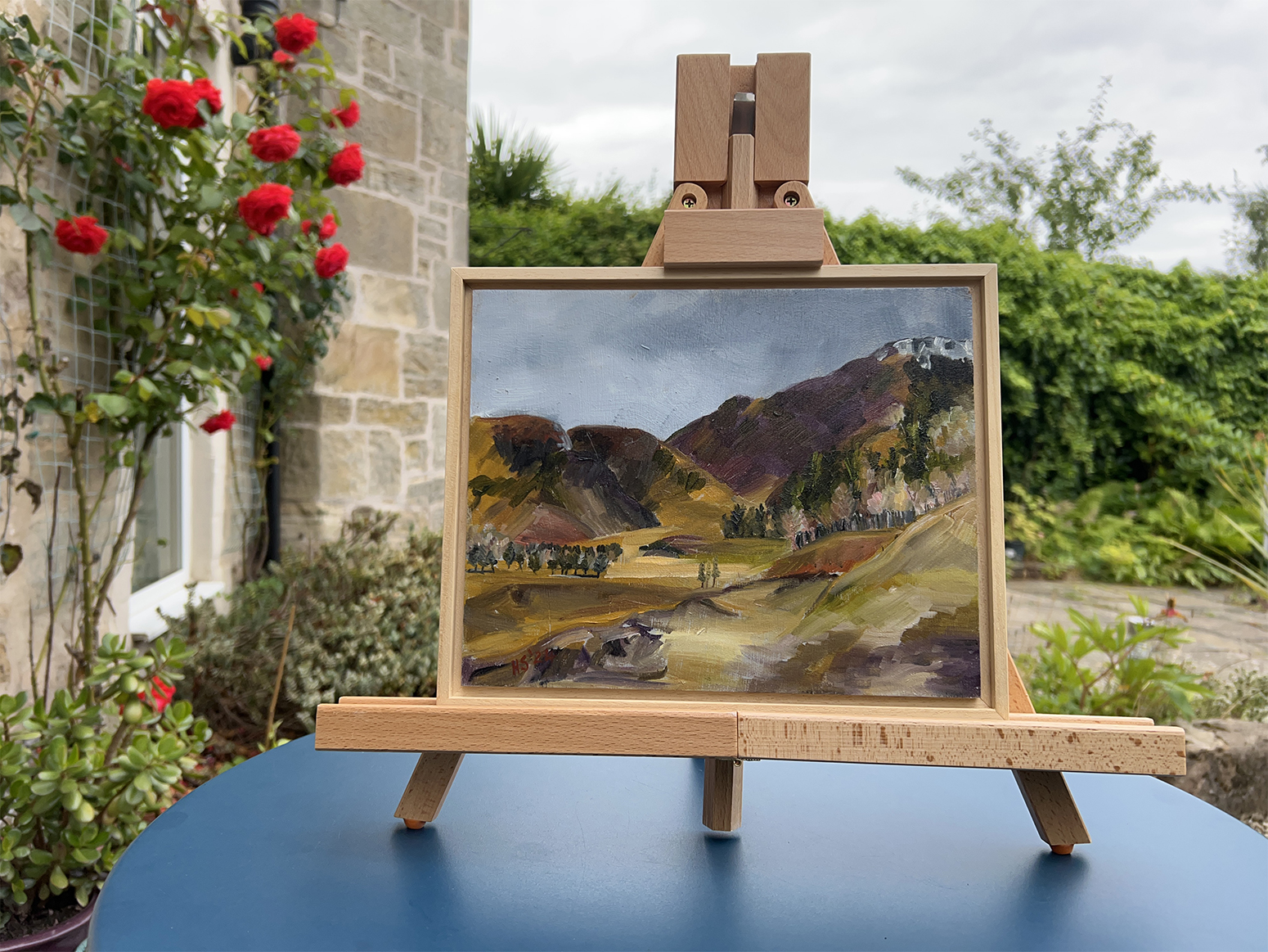 An autumn walk near Newtonmore in the Highlands of Scotland. This small oil on board measures 11” x 9”. It is supplied framed and ready to hang and is signed on the front and back. Postage to destinations within the UK is free. For shipping prices to other destinations please contact me at artbysmart4@gmail.com.