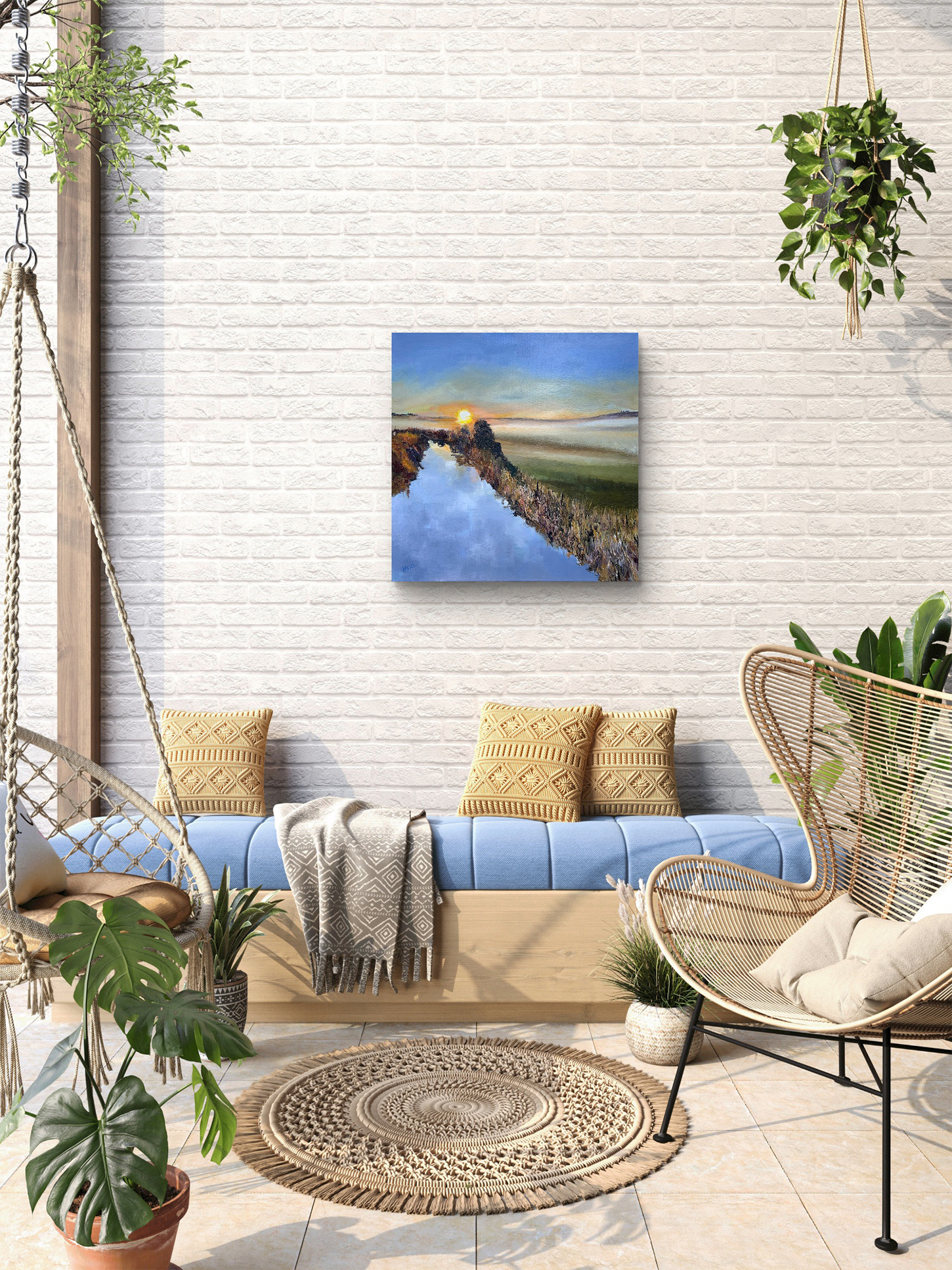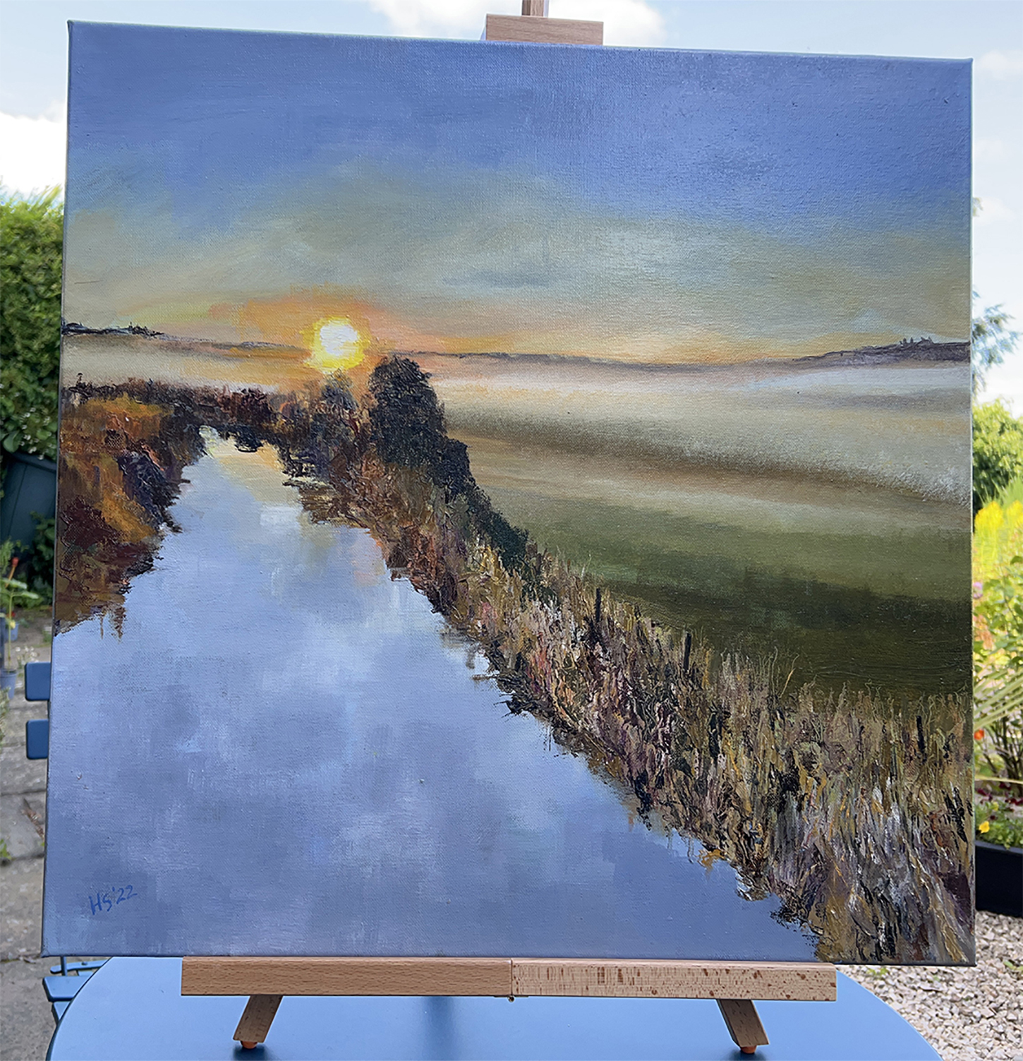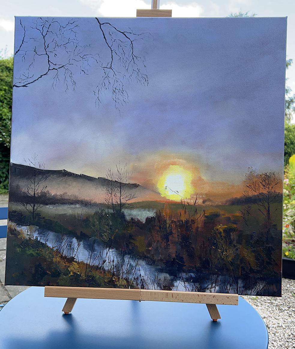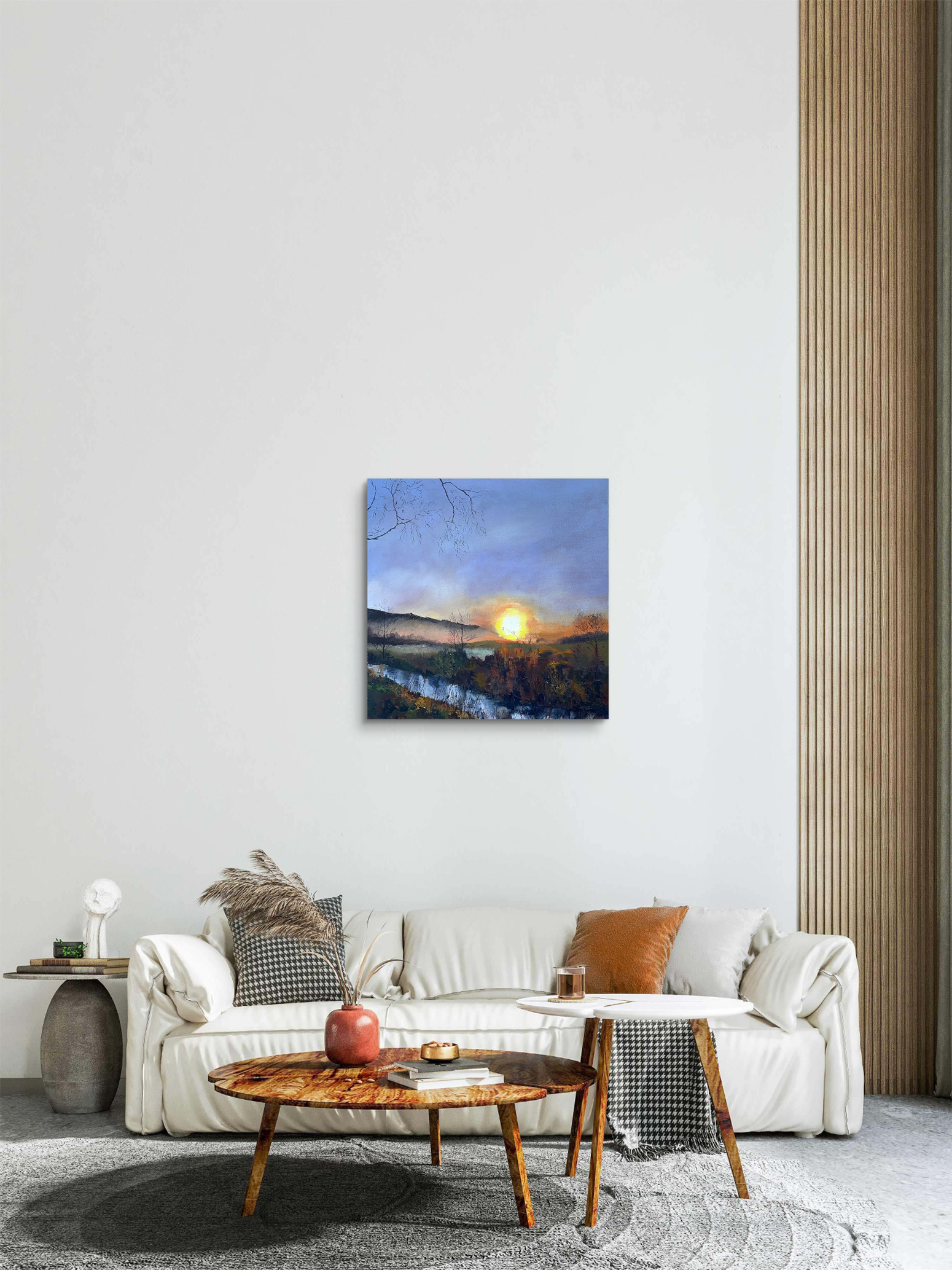 Sunset over the River Eden, one of three from January 2022. Measuring 24” x 24” this painting is supplied unframed with hanging hardware atttached. It is signed on the front and back. Postage to destinations within the UK is free. For shipping prices to other destinations please contact me at artbysmart4@gmail.com