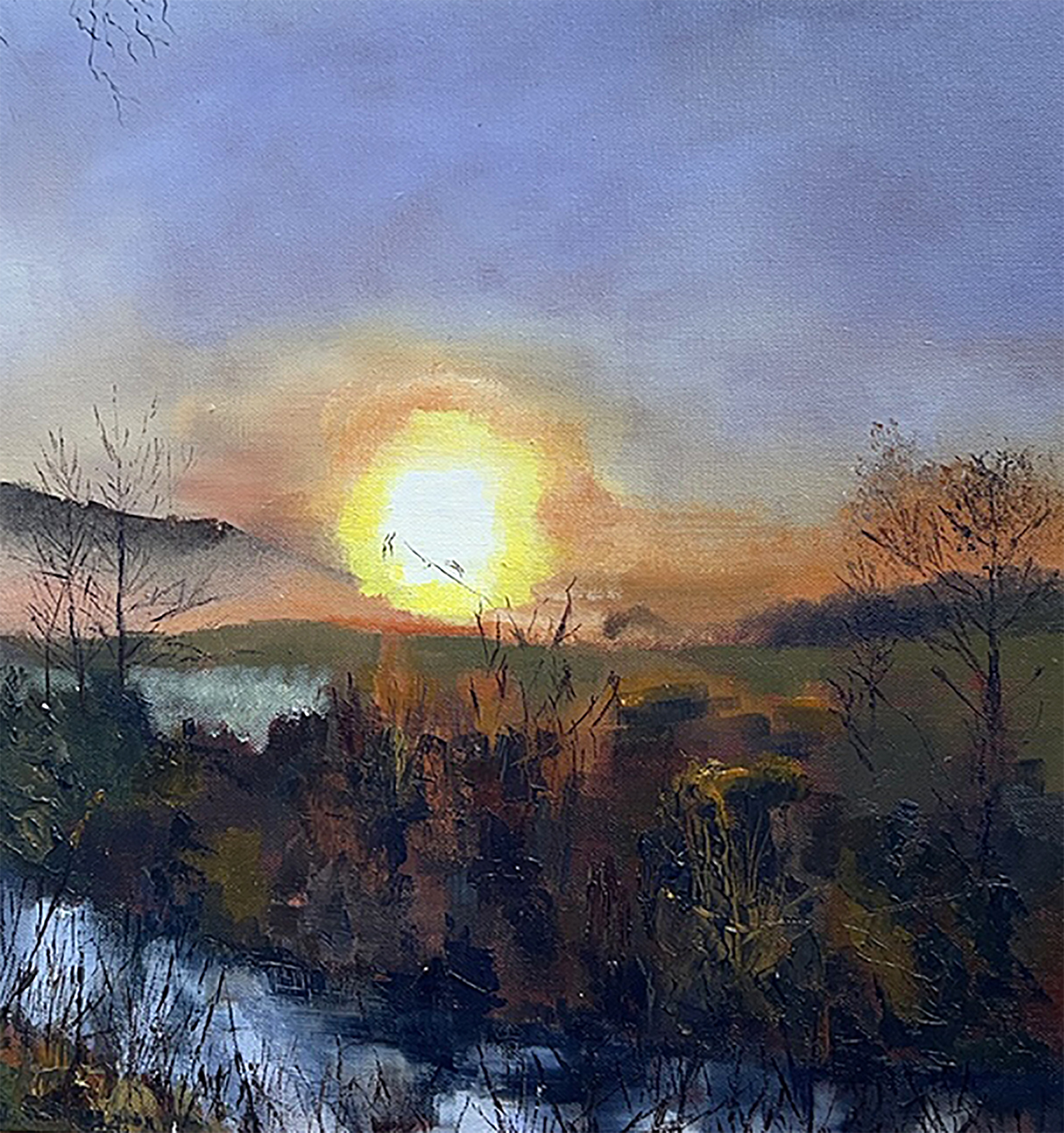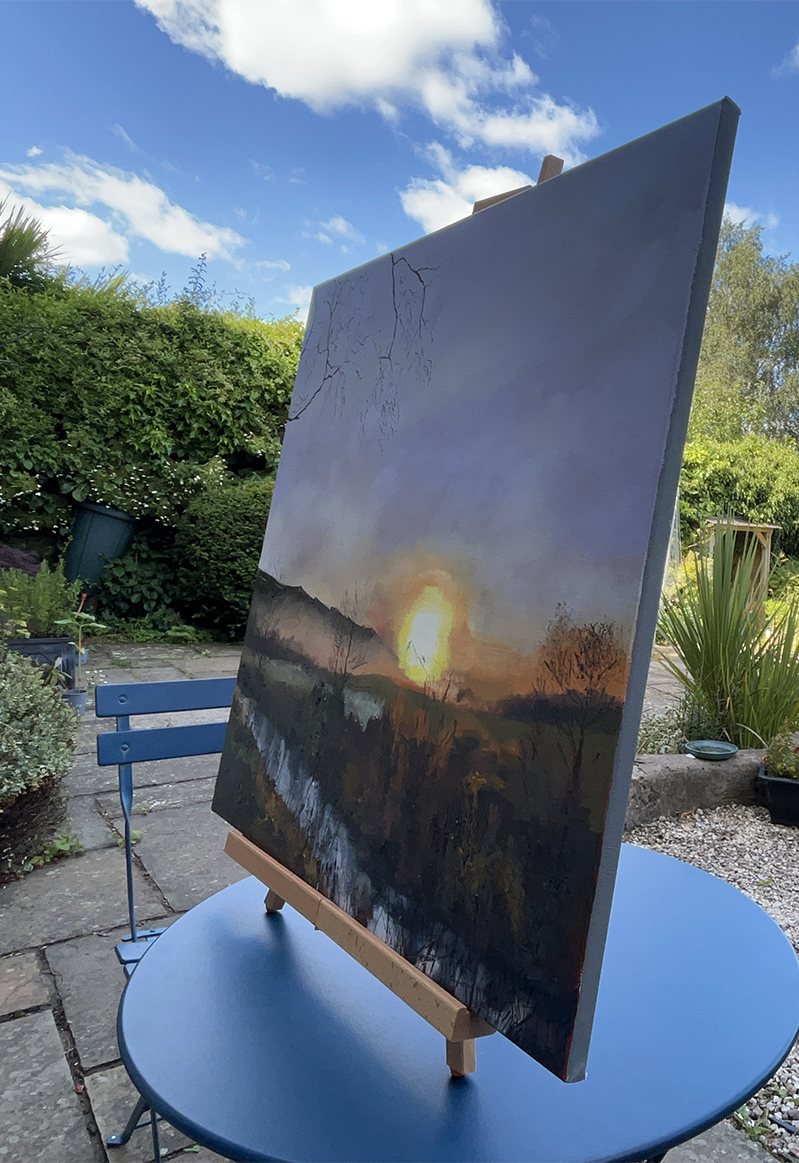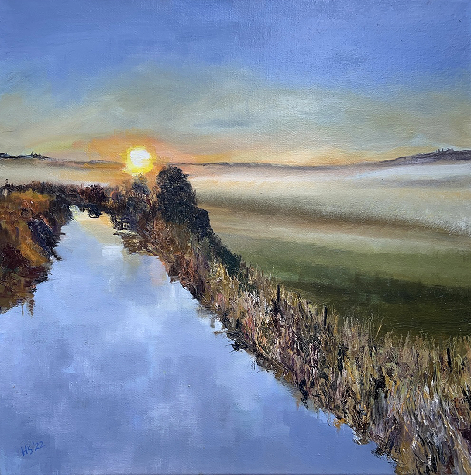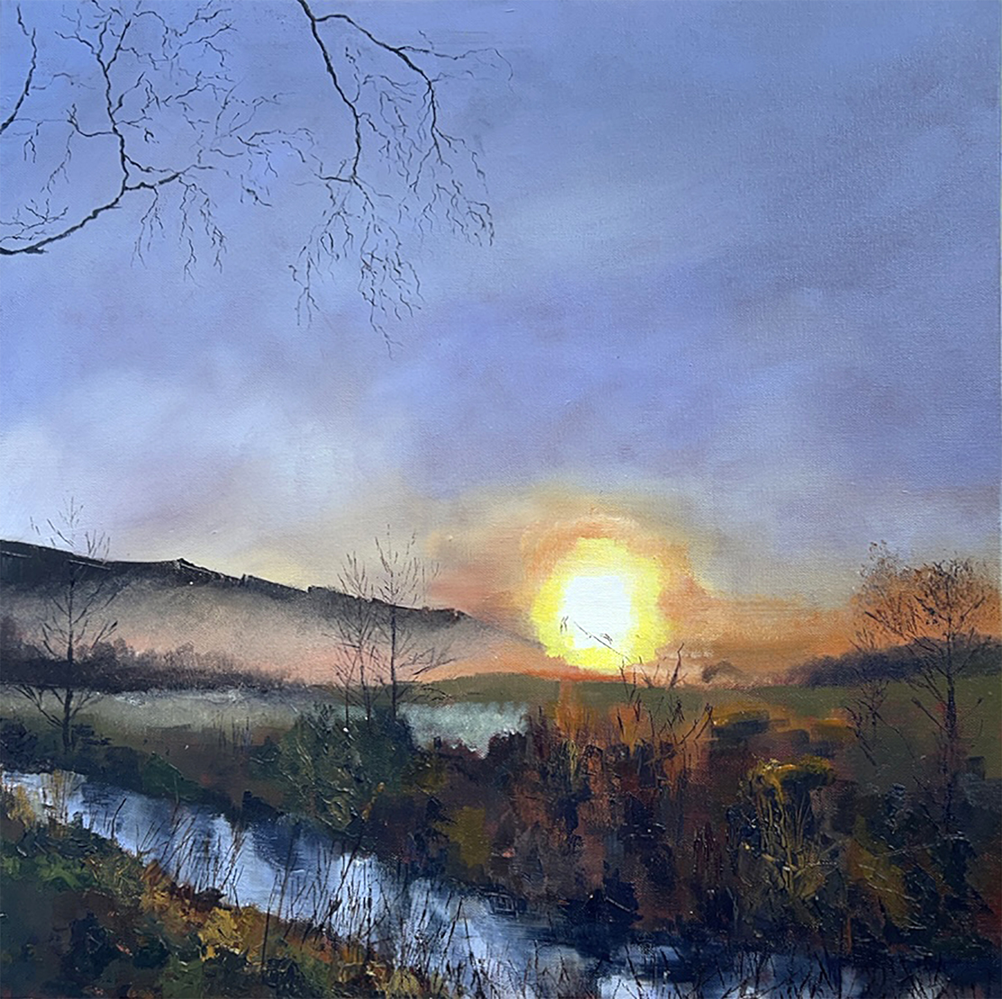 Sunset over the River Eden, one of three from January 2022. Measuring 24” x 24” this painting is supplied unframed with hanging hardware atttached. It is signed on the front and back. Postage to destinations within the UK is free. For shipping prices to other destinations please contact me at artbysmart4@gmail.com