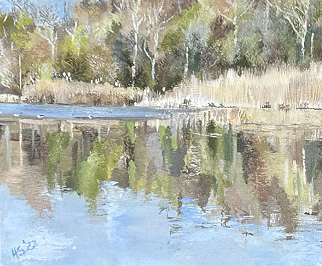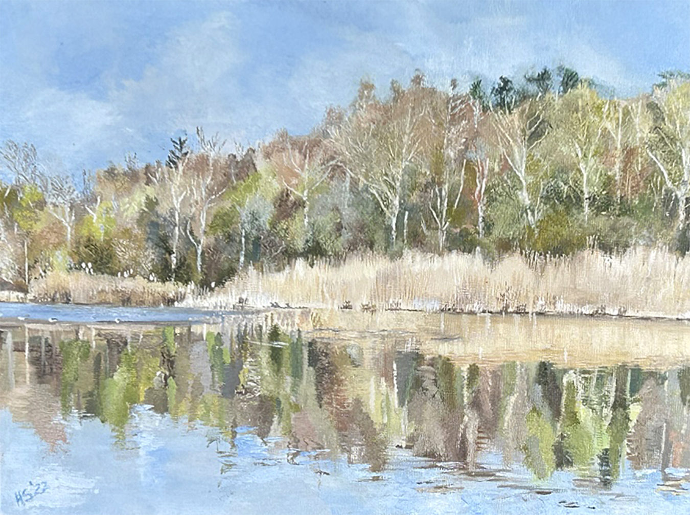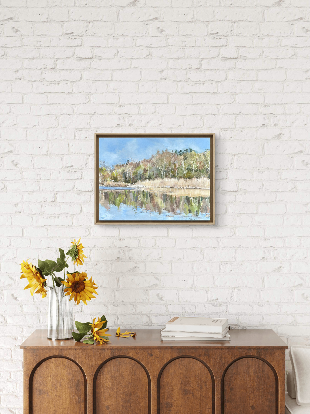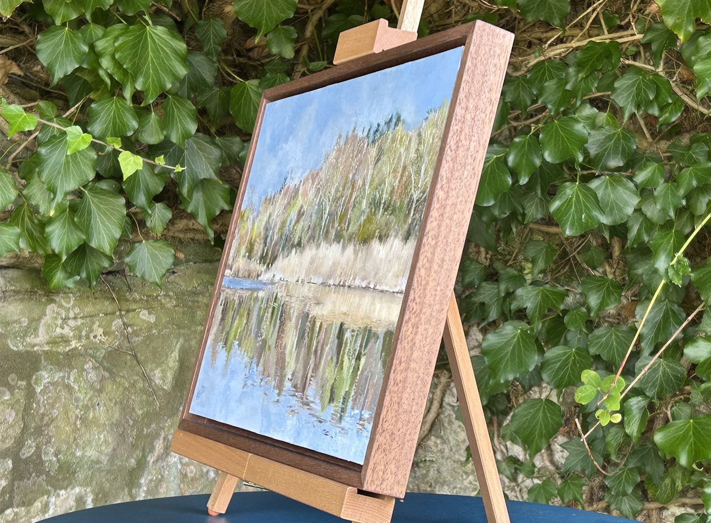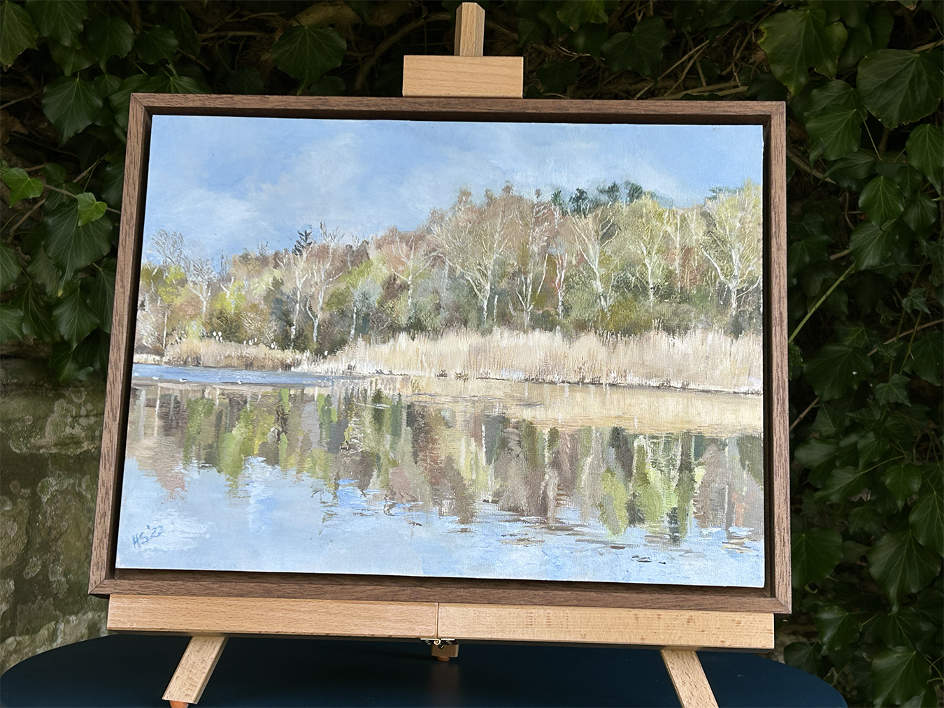 The trees reflecting in the waters of Gadden Loch. This oil on canvas measures 12” x 16”. It is supplied framed and ready to hang and is signed on the front and back. Postage to destinations within the UK is free. For shipping prices to other destinations please contact me at artbysmart4@gmail.com.