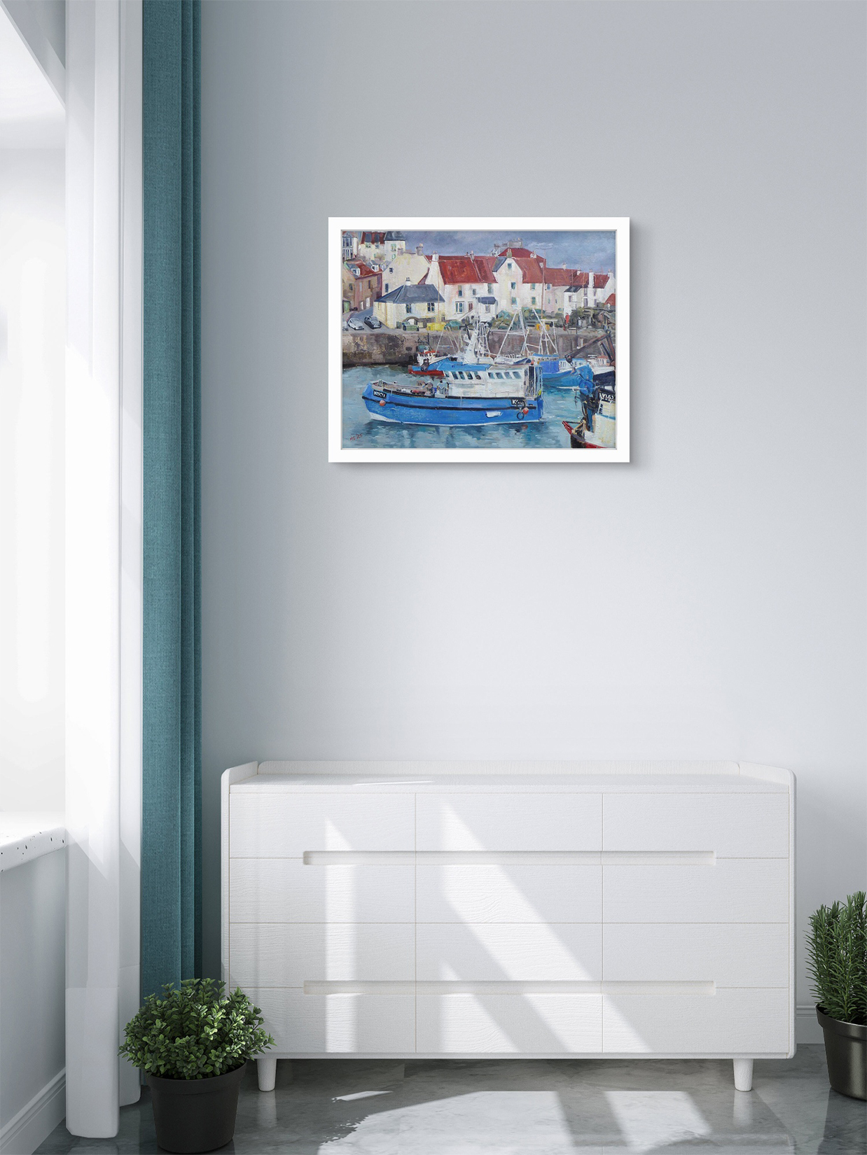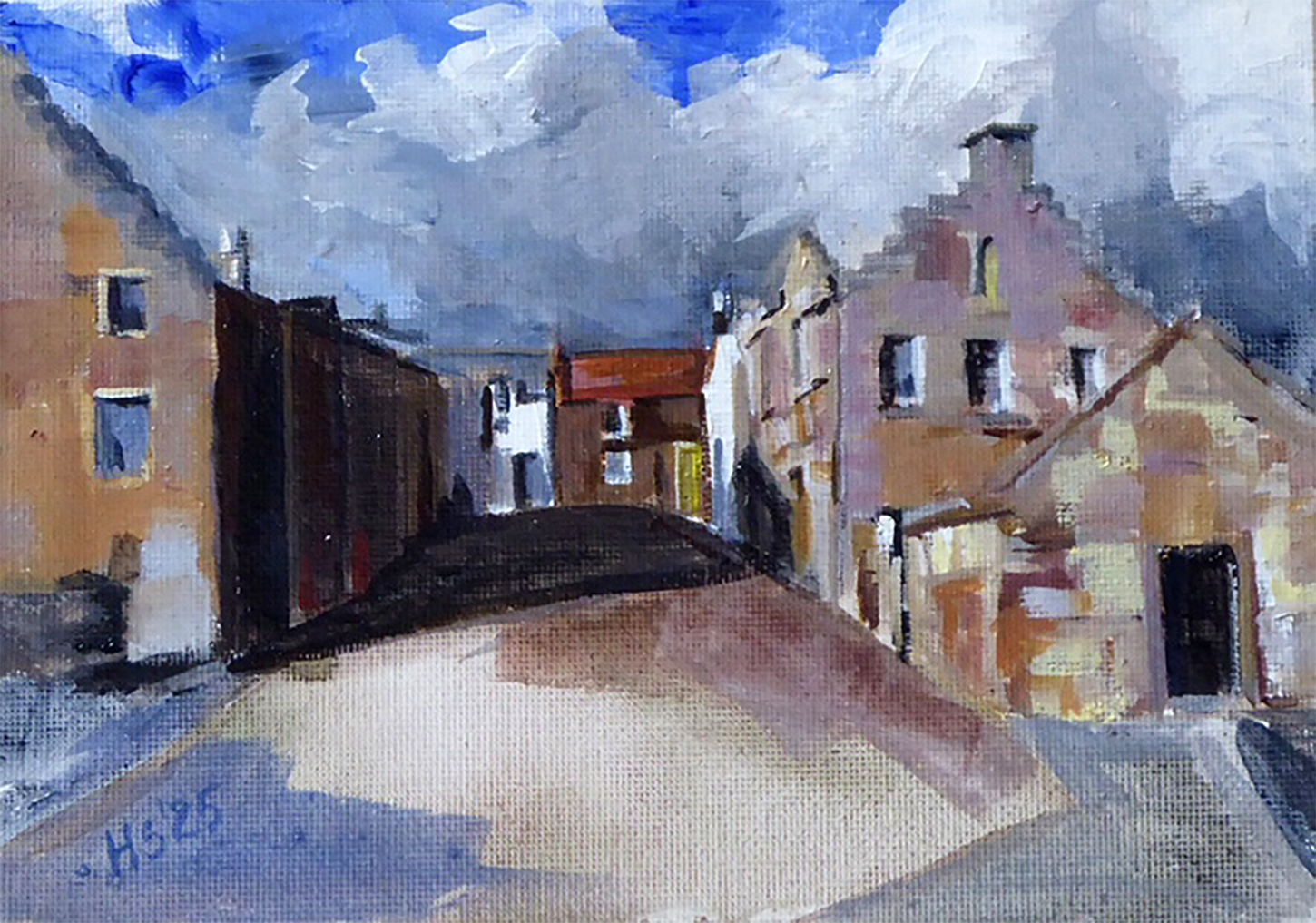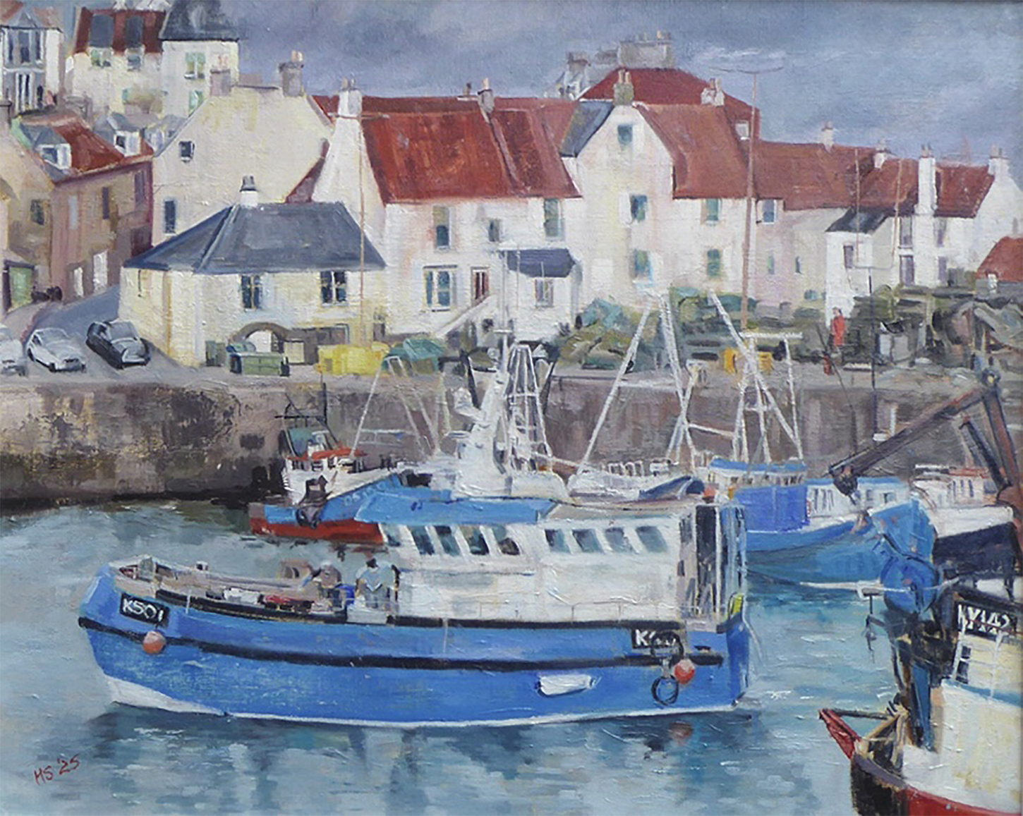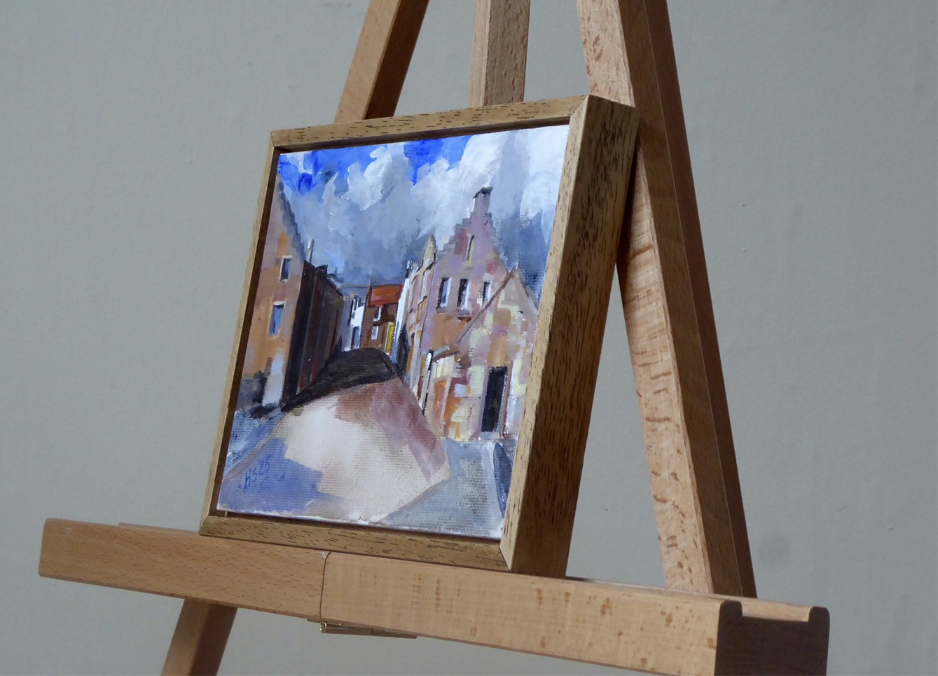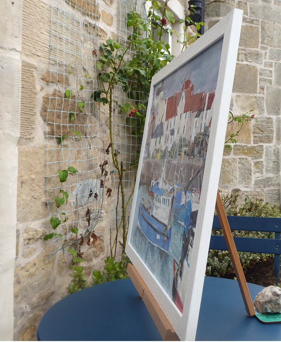The picturesque village of Pittenweem in the East Neuk of Fife: this small oil on board measures 7” x 5”. It is supplied framed and ready to hang and is signed on the front and back. Postage to destinations within the UK is free. For shipping prices to other destinations please contact me at artbysmart4@gmail.com.