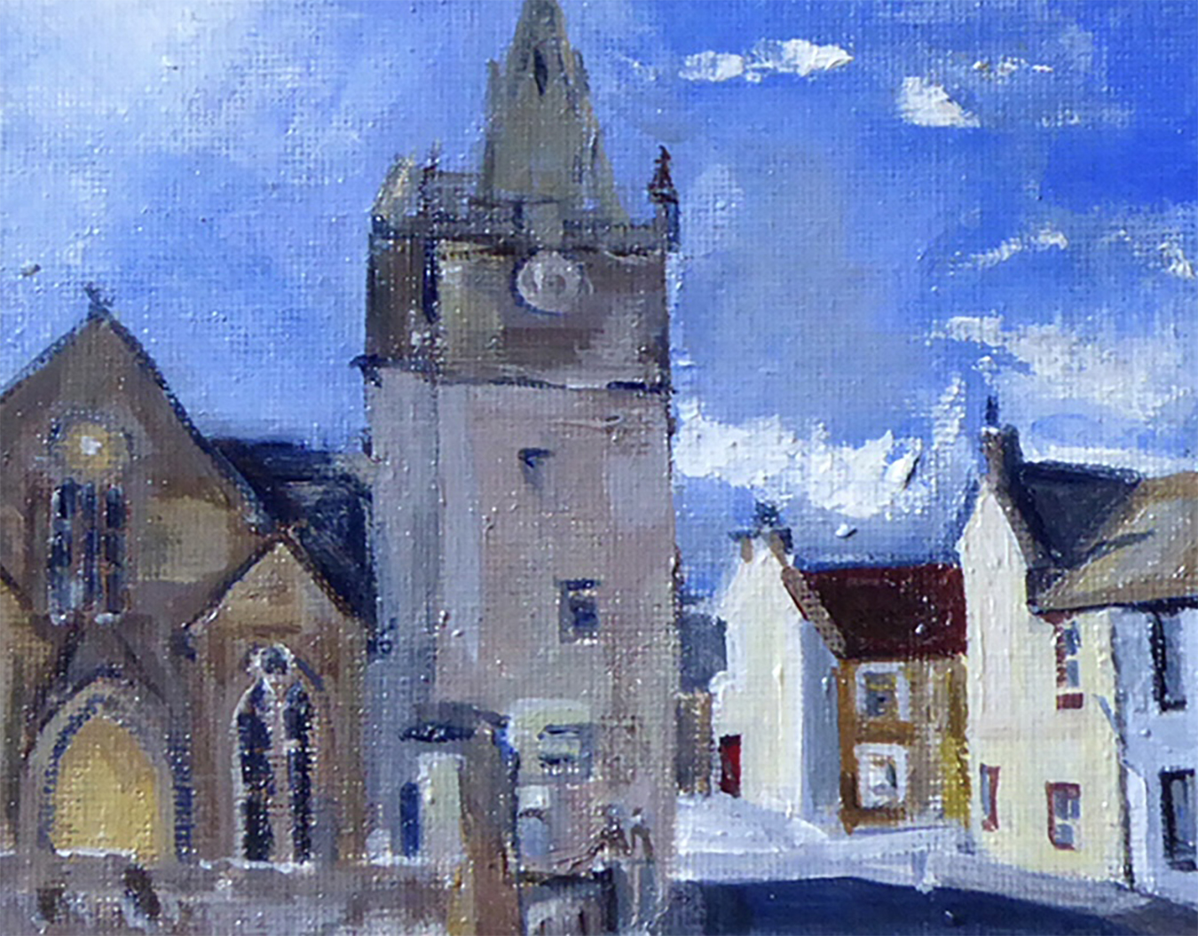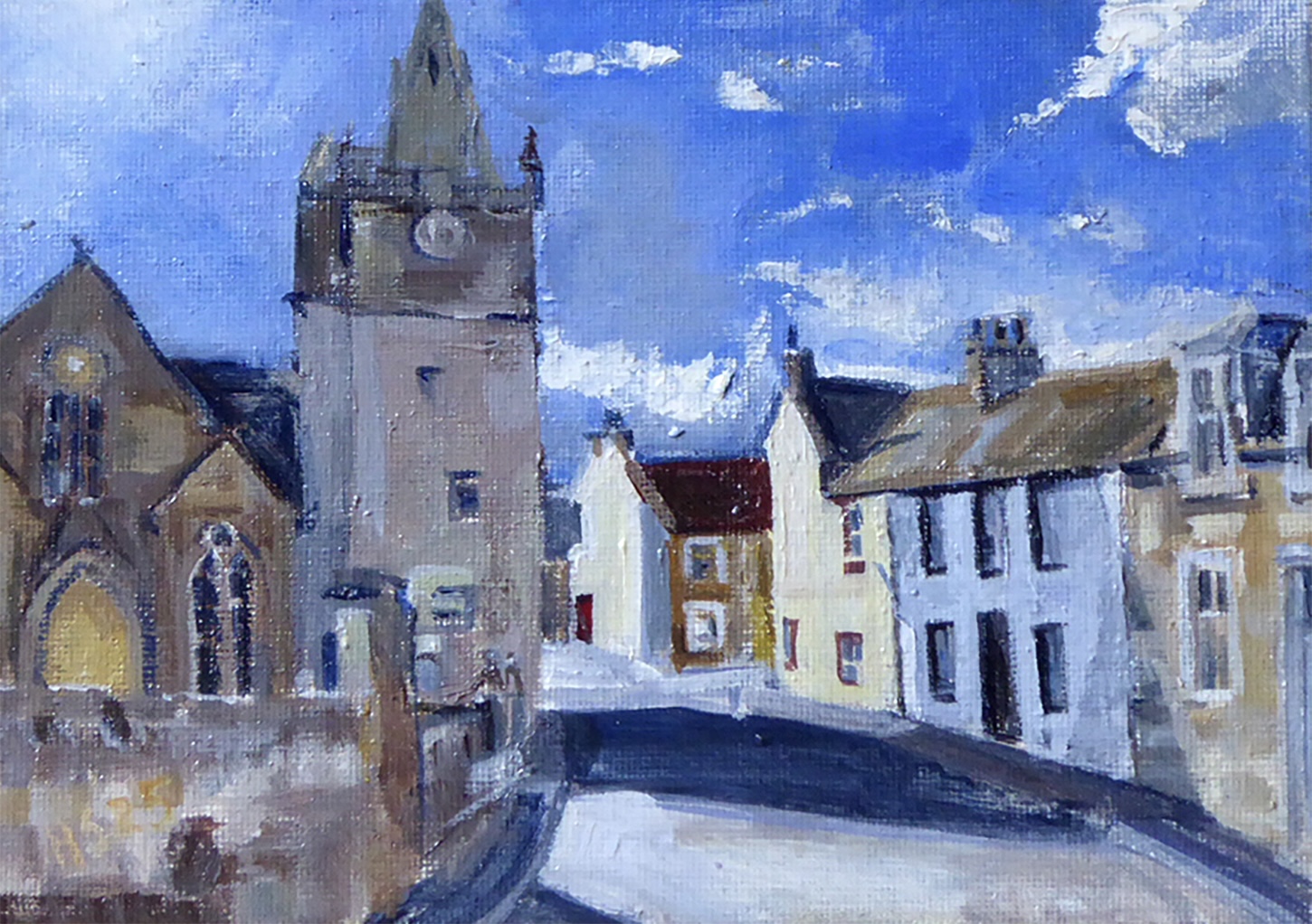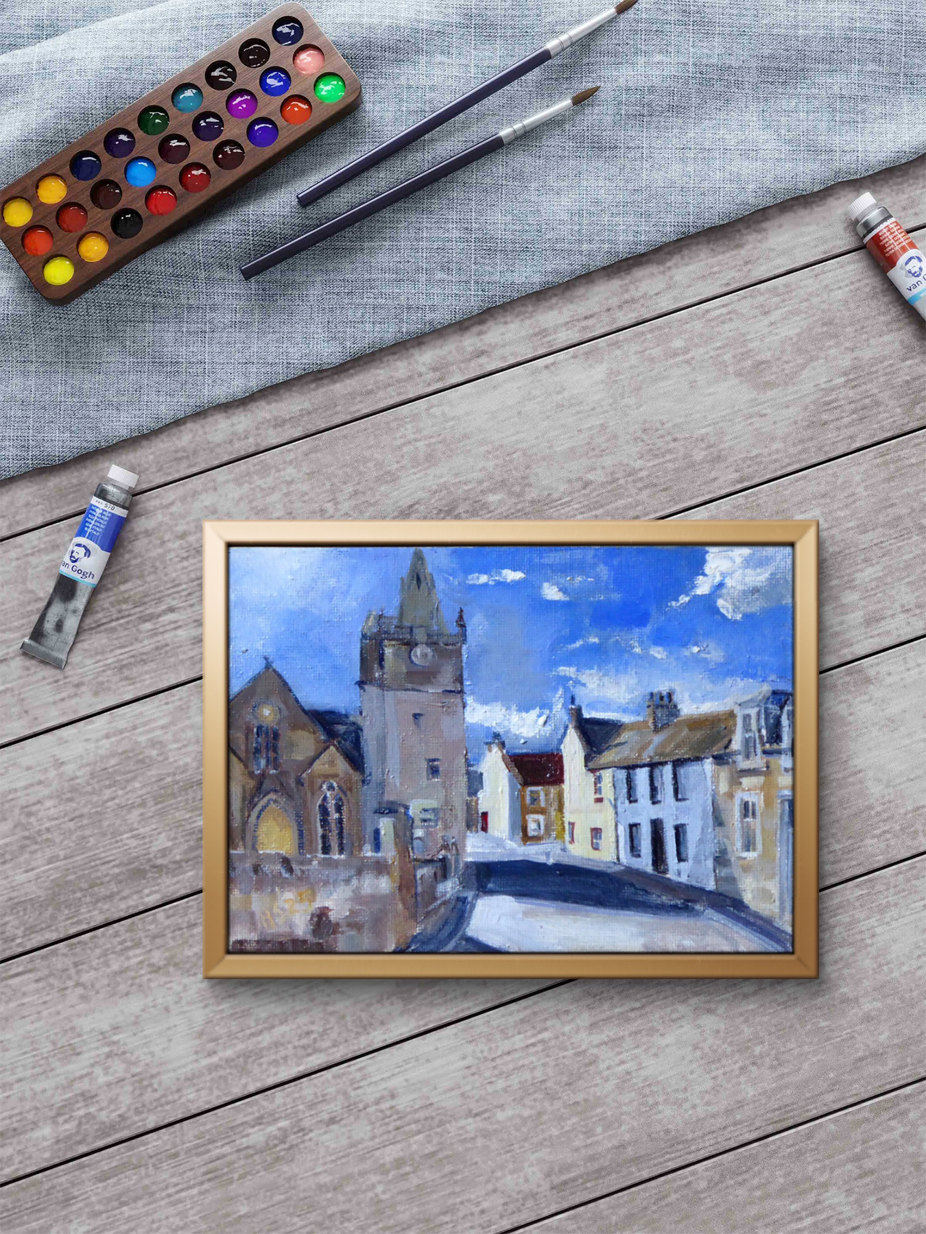 The picturesque village of Crail in the East Neuk of Fife. This small oil on board measures 7” x 5”: it is supplied framed and ready to hang and is signed on the front and back. Postage to destinations within the UK is free. For shipping prices to other destinations please contact me at artbysmart4@gmail.com.