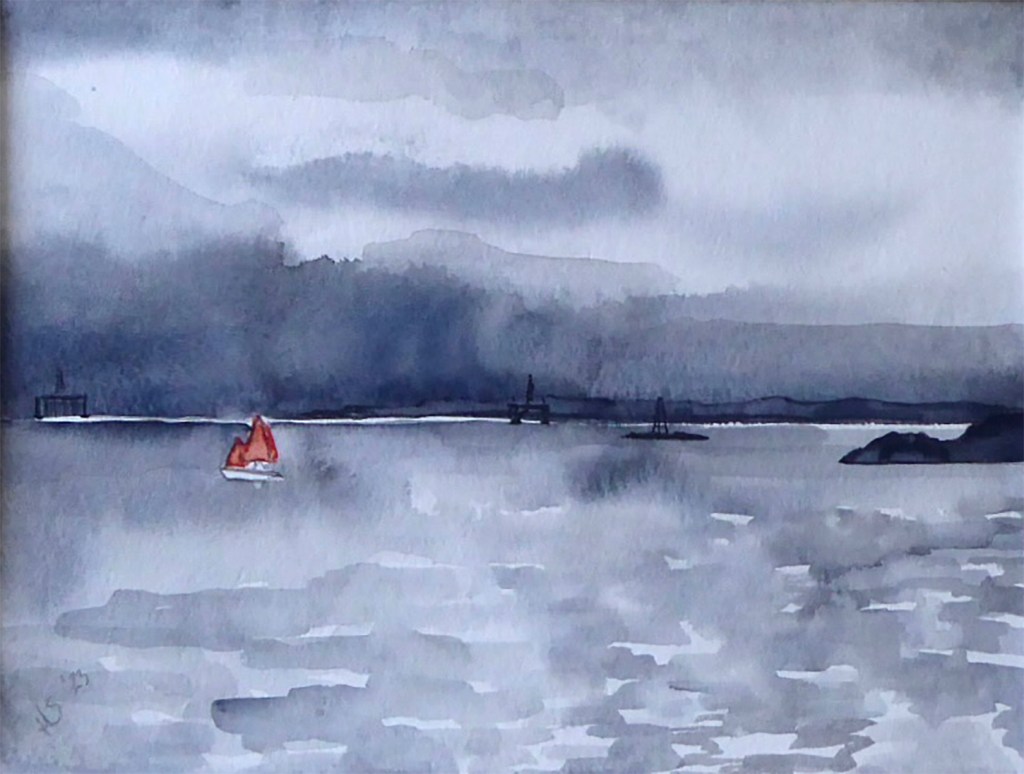 The sun reflects on the waters of the Firth of Forth. This oil on canvas measures 17”x 16”. It is supplied framed and ready to hang and is signed on the front and back. Postage to destinations within the UK is free. For shipping prices to other destinations please contact me at artbysmart4@gmail.com.