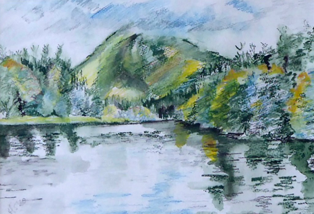 The trees reflecting in the waters of Gadden Loch. This oil on canvas measures 12” x 16”. It is supplied framed and ready to hang and is signed on the front and back. Postage to destinations within the UK is free. For shipping prices to other destinations please contact me at artbysmart4@gmail.com.